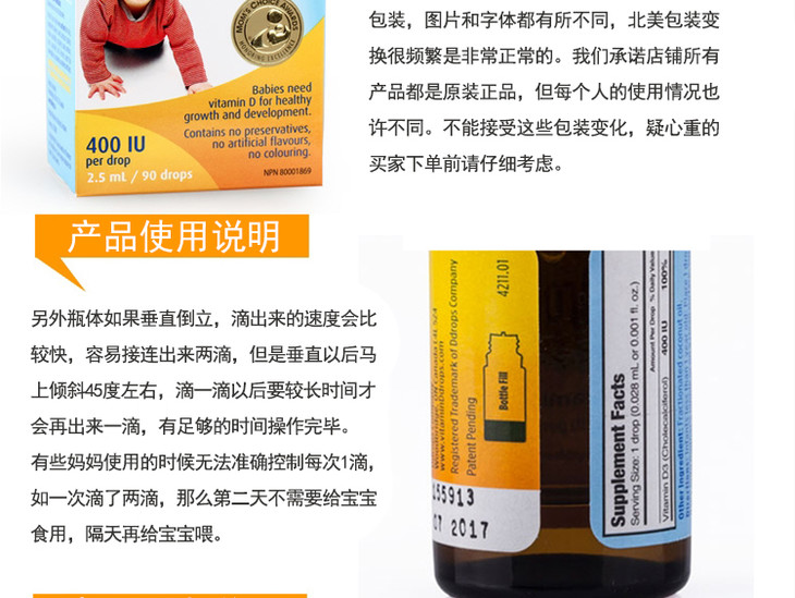 【保税仓】美国Baby Ddrops 维生素D3滴剂2.5ml(美版) 商品缩略图0