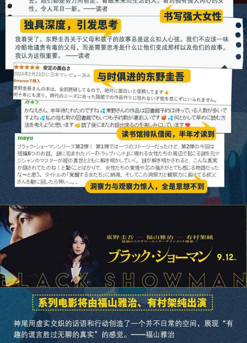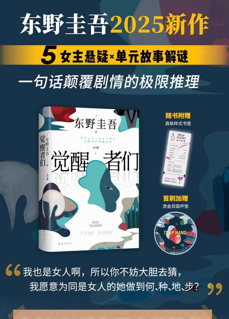 ★ 东野圭吾2025新作,5 女主悬疑,单元故事解谜!上市即霸占东贩、日贩销量排行榜TOP★ 不做圣女,不是恶女,更闪闪发光的群像!“我也是女人啊,所以你不妨大胆去猜,我愿意为同是女人的她做到何、种、地、步 ?”★ 一句话颠覆剧情的极限推理!这场戏,从头一个字就开始演了,你能从哪行字起猜到结局?★ 赠菜单样式书签,首刷加赠烫金双面杯垫! “欢迎光临‘TRAP HAND’”,开启沉浸式阅读★ 系列电影将由福山雅治、有村架纯出演,预计2025年上映