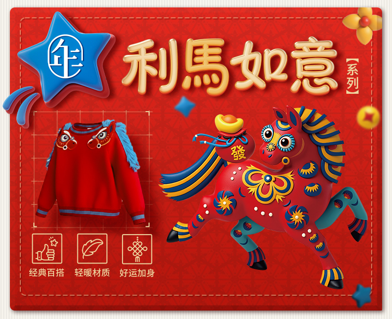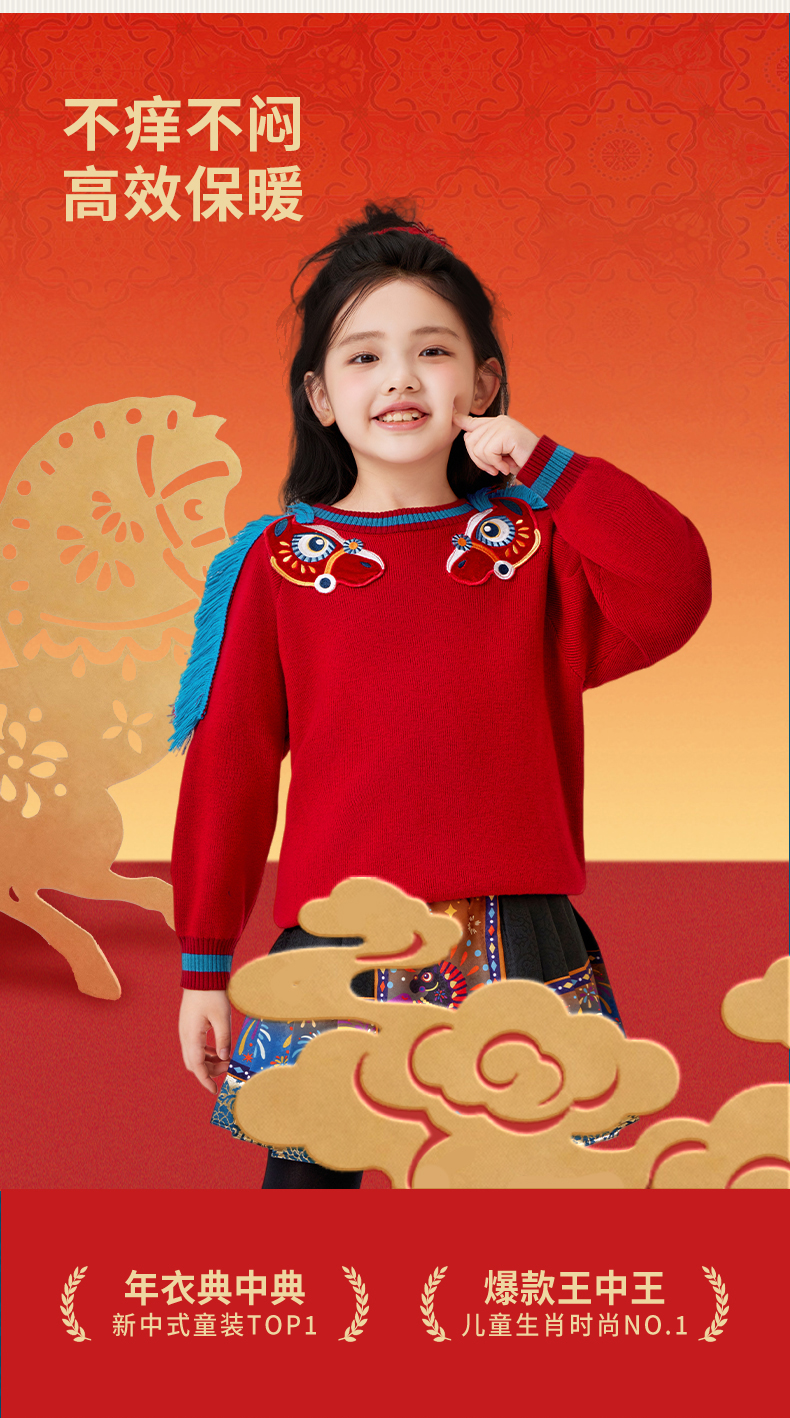 年衣童装毛衣儿童男女童秋冬新款保暖国风好彩头毛衣