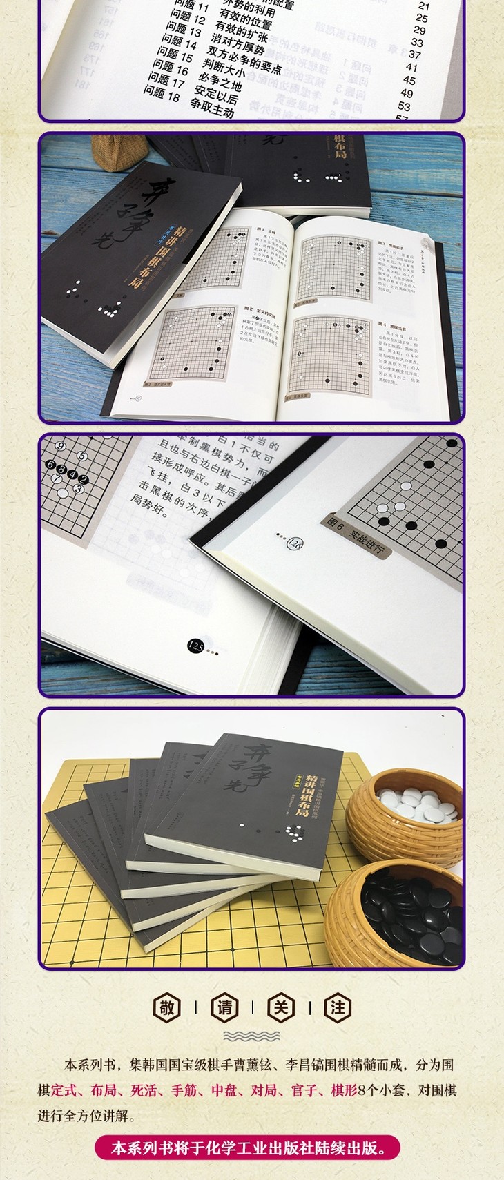 本系列读物经韩国超一#棋手曹薰铉先生和李昌镐先生亲自授权,集二人数十年围棋精髓而成,分为定式、布局、棋形、中盘、对局、官子、死活、手筋八个方面,对围棋技巧进行全方位讲解。本系列读物将于化学工业出版社陆续出版。