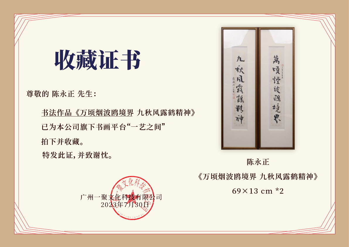 陈永正书法69x13CM《万顷烟波鸥境界,九秋风露鹤精神》1.6平尺手写纸本宣纸作品[原作编号:SF0509]