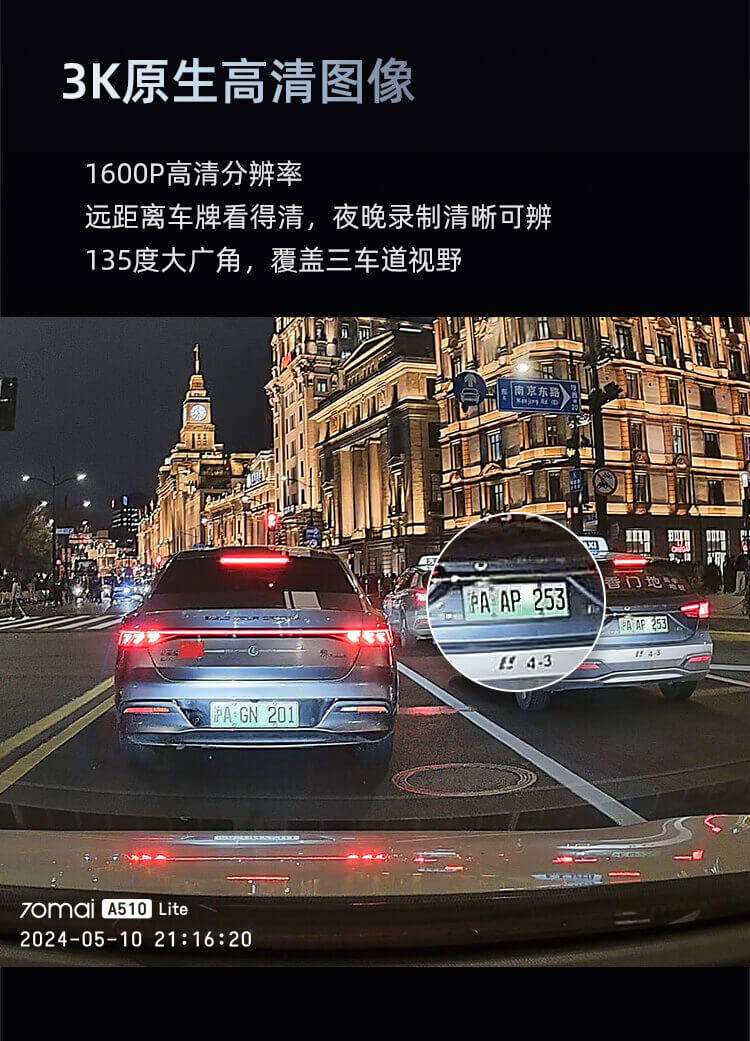70迈3k高清行车记录仪A510Lite