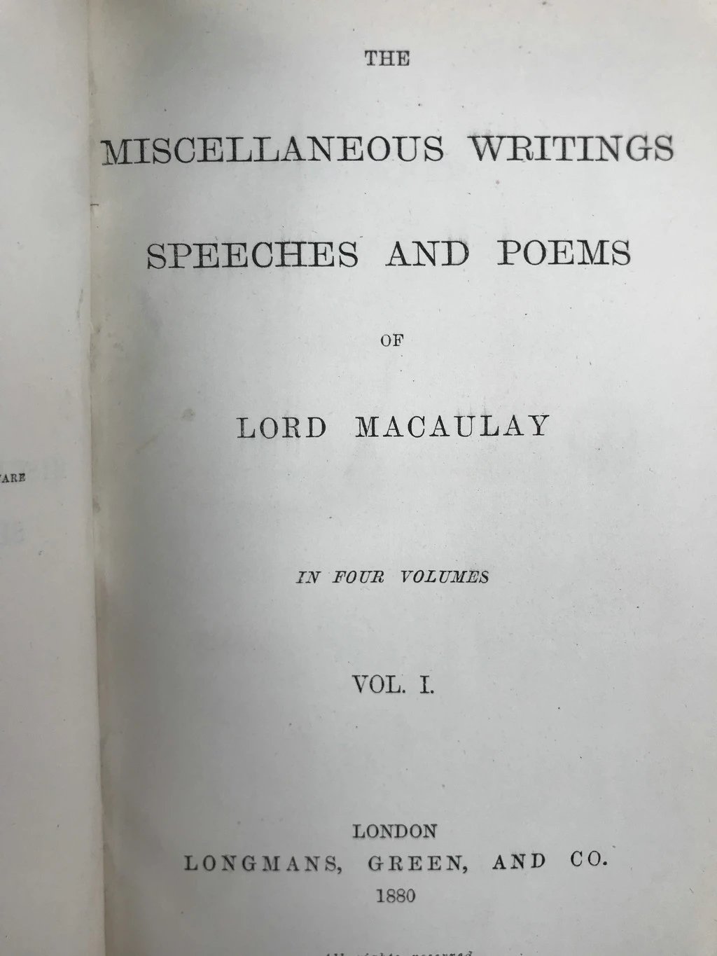 1880年 麦考莱勋爵《杂文、演说与诗歌集》(全4卷) 全真皮精装36开