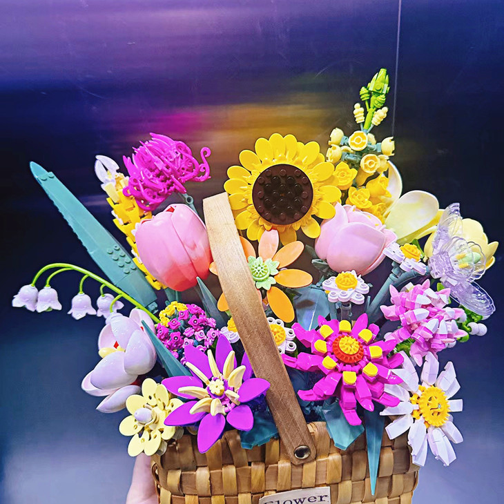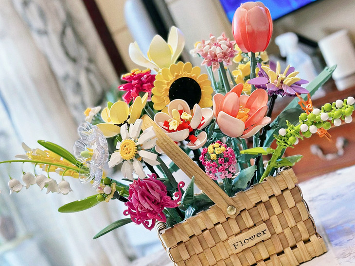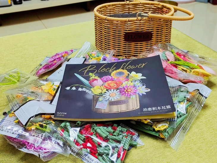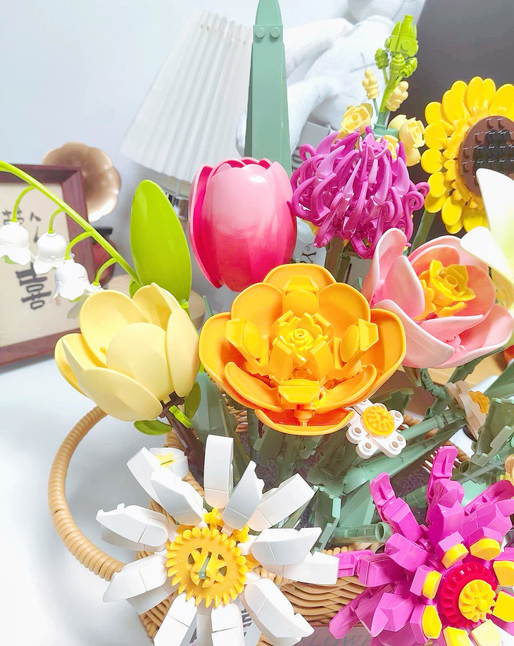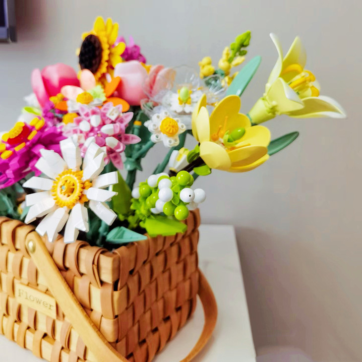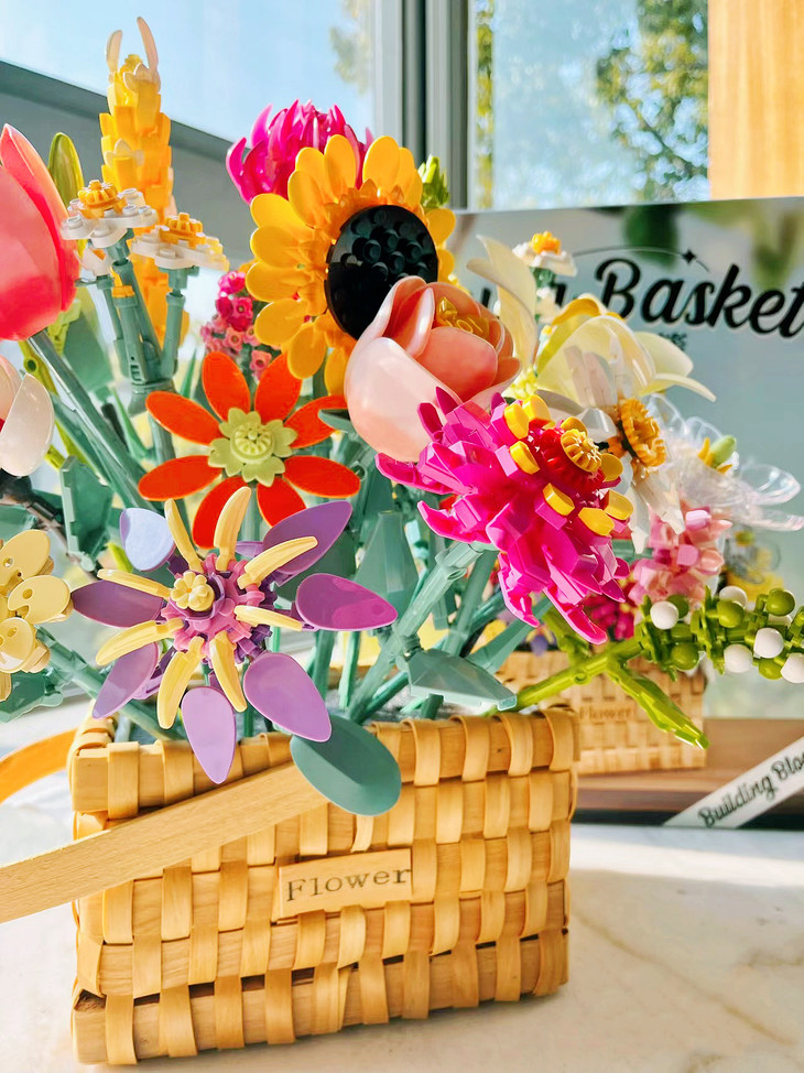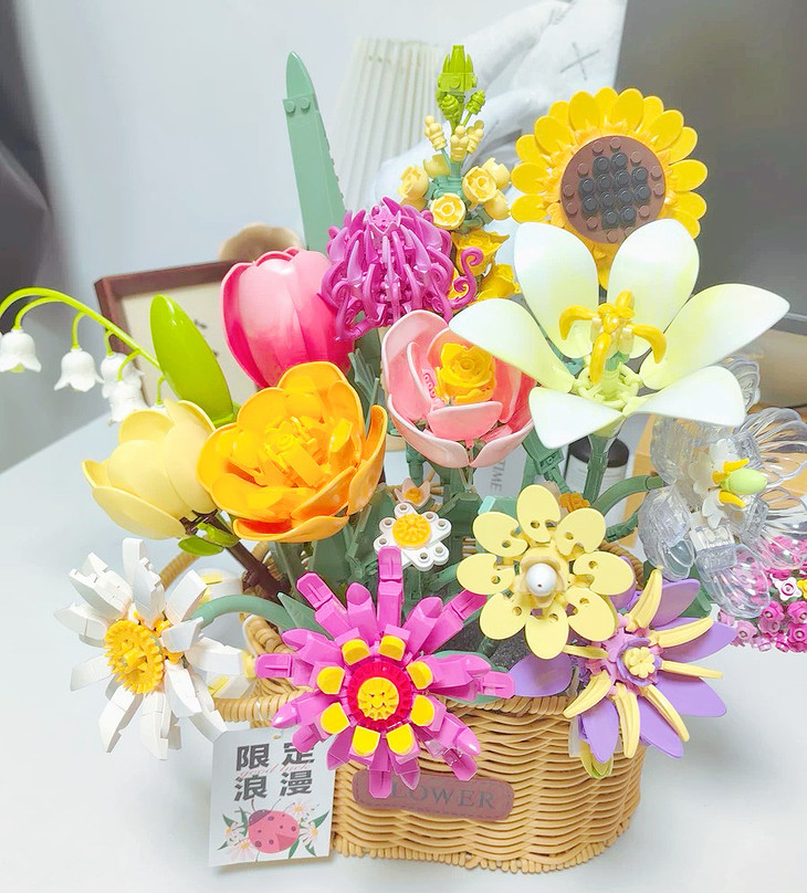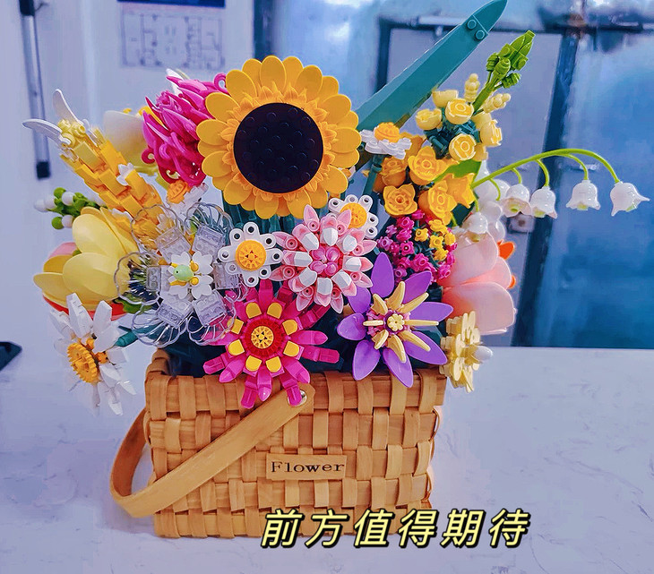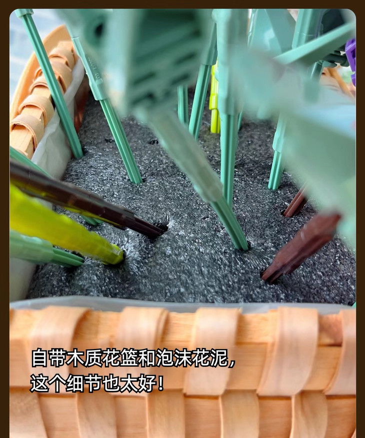💐💐16-20束花束+1个篮子+1条灯串 看图片不看实物都会被它的美丽所吸引,🍄整个套装有16-20束花束哦 💫这个玩具还配送一个篮子,自己diy把花插在篮子里满满一大篮子,好看又有意义🍾 每次看到都能想起这是心爱的人亲手拼出来送给重要的自己🏆纪念价值满分