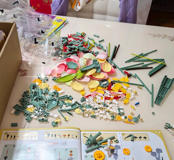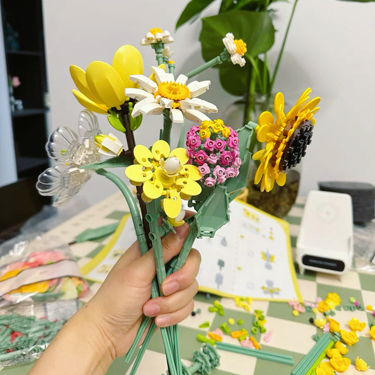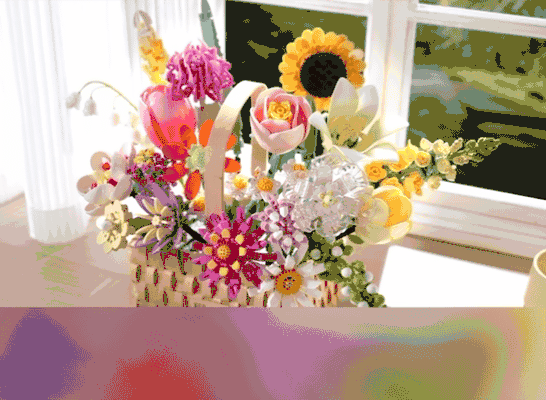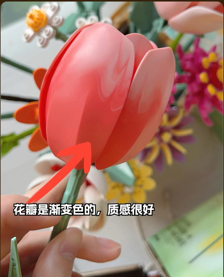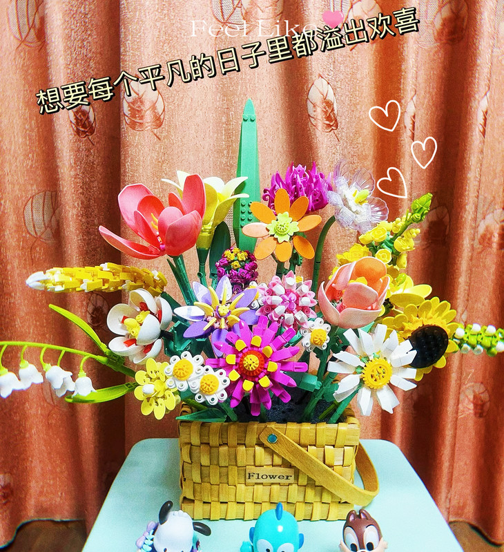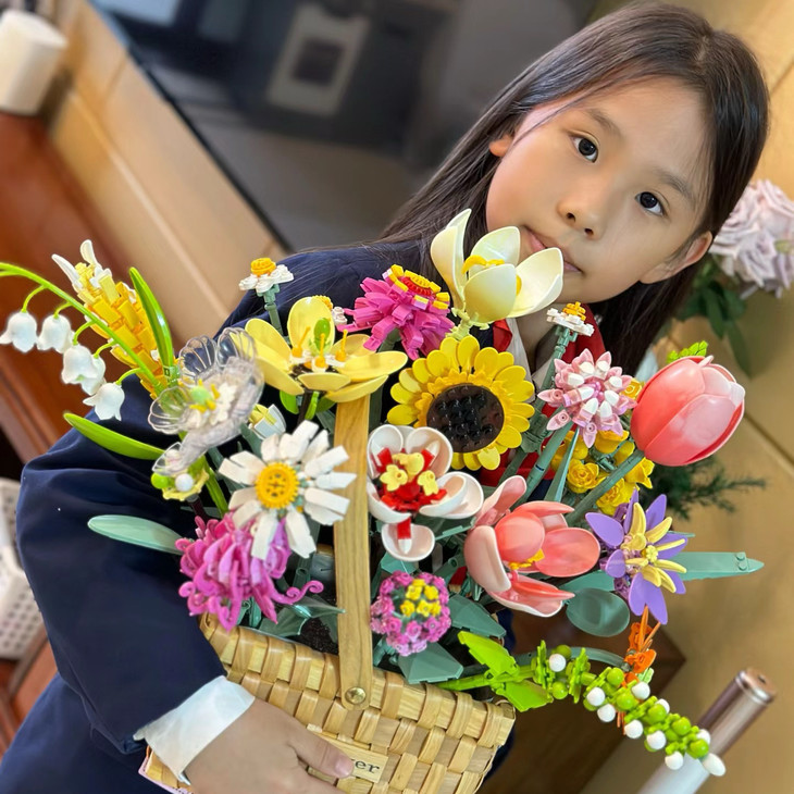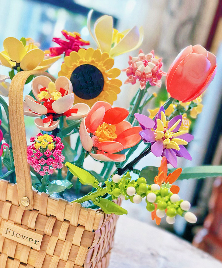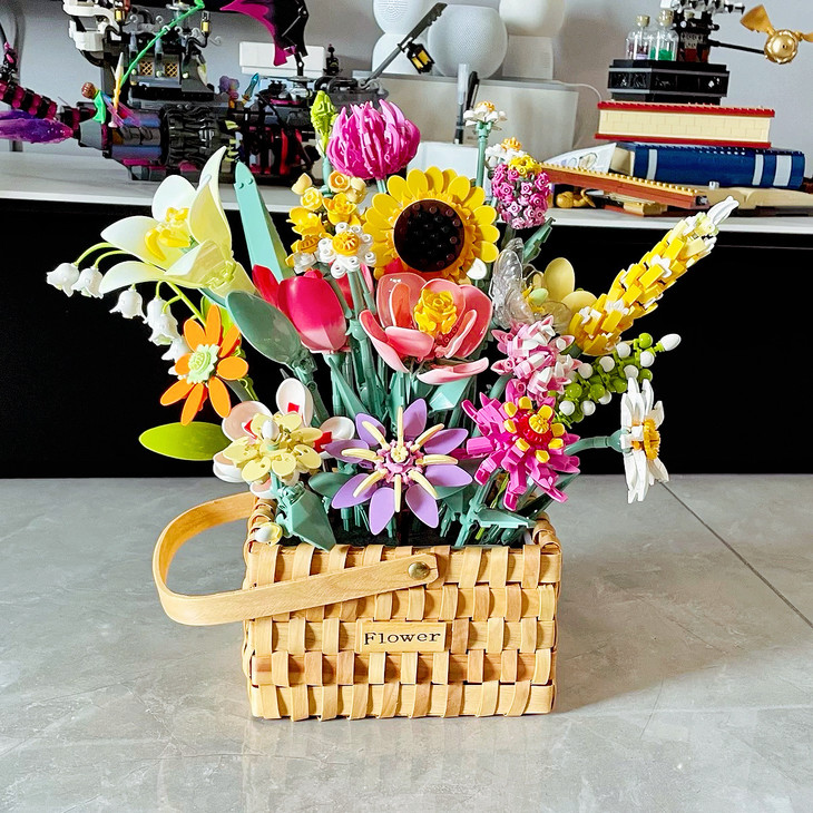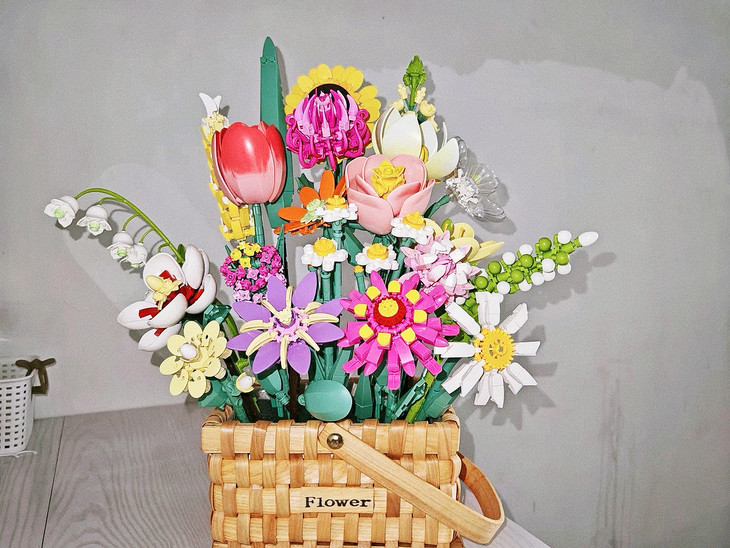 💐💐16-20束花束+1个篮子+1条灯串 看图片不看实物都会被它的美丽所吸引,🍄整个套装有16-20束花束哦 💫这个玩具还配送一个篮子,自己diy把花插在篮子里满满一大篮子,好看又有意义🍾 每次看到都能想起这是心爱的人亲手拼出来送给重要的自己🏆纪念价值满分