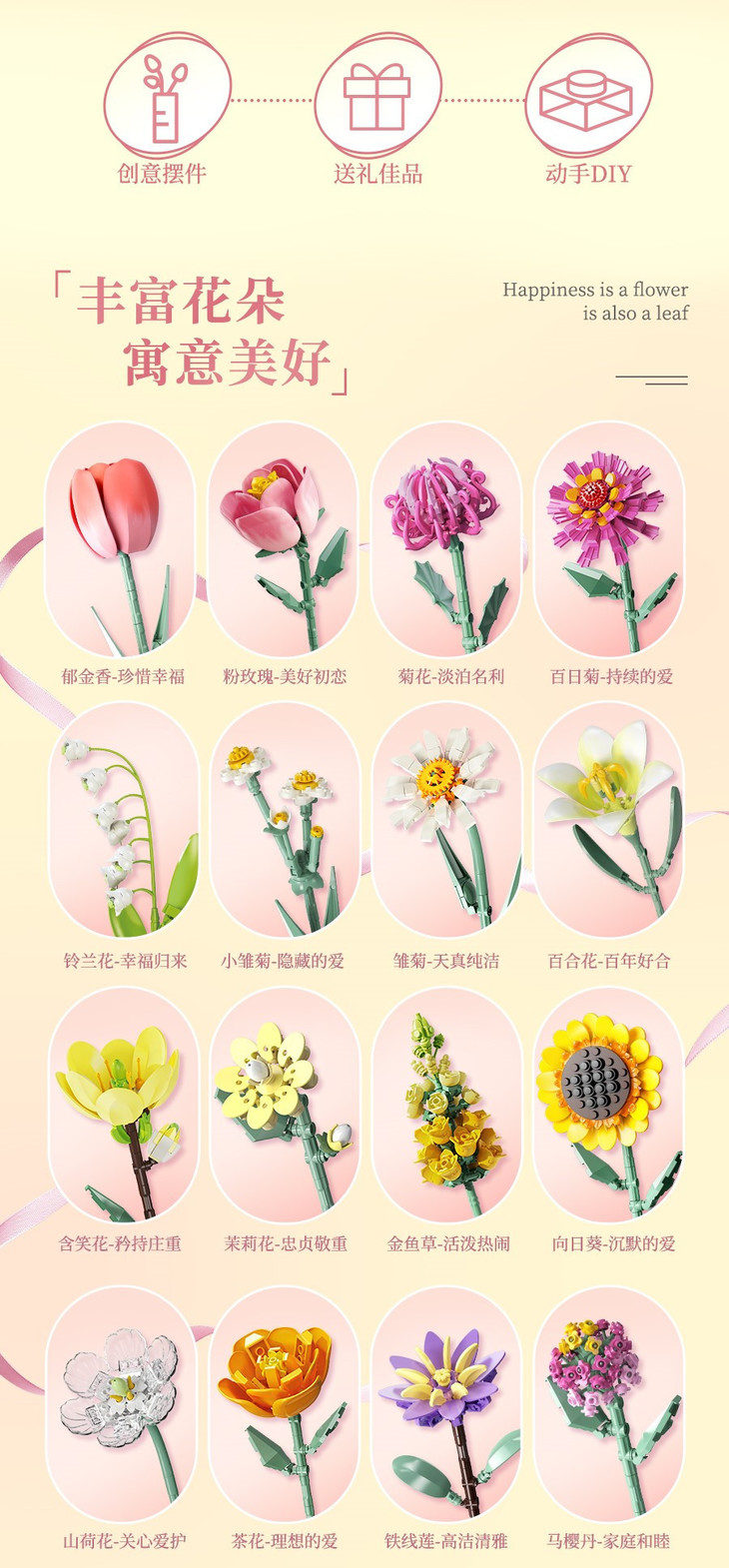 🧩积木花的设计灵感来源于童话中的玩具小精灵 它们总是在欢乐的玩耍中创造出最美的风景🎨 而永生积木花也正是这样一束充满欢乐与浪漫的花朵🥇在它的身上,我们看到了爱不凋谢的勇气和力量 🎪永生积木花可以保持永远新鲜,意味着这份浪漫会持续很久,永不凋谢 盛不盛开 🎷花都是花 随着时间点滴流逝🎬也许身边的人形形色色,但是也要永远保持热爱,去奔赴更美好的未来