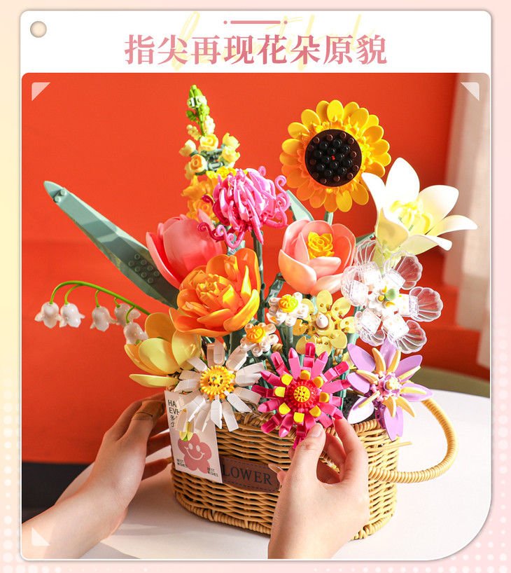 🌸【费米永生积木花篮】🔺1、ABS材质光滑不划手,原料品质、模具精度、🍅生产制造线都是国际领先水平 🔺