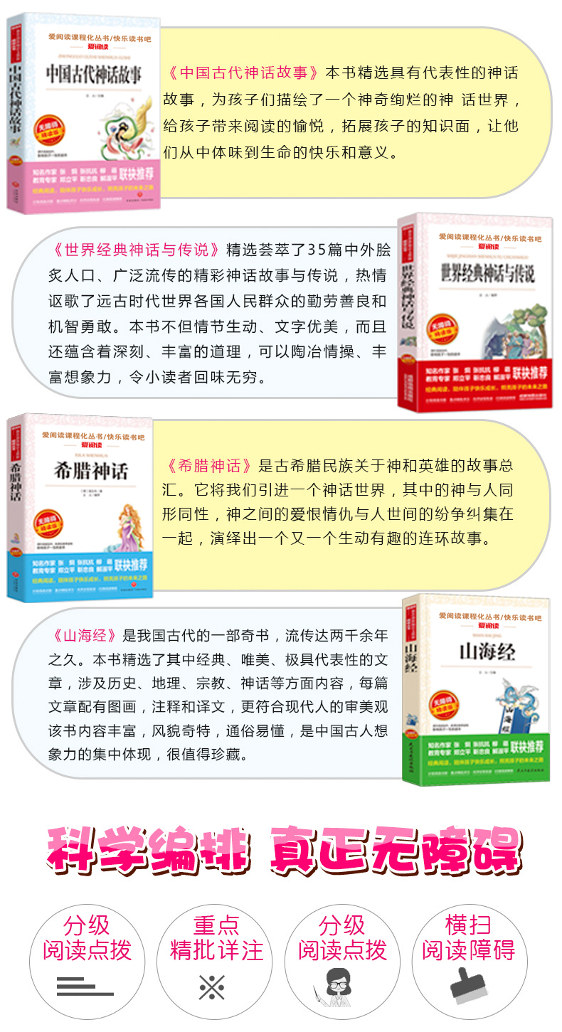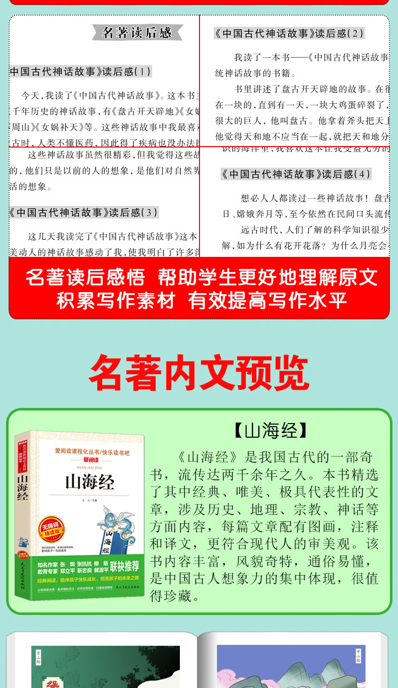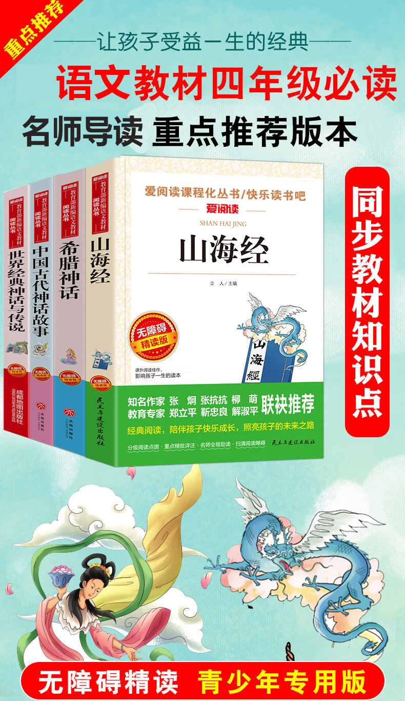 温馨提示:为适应市场需求,本套装于2020年9月5日16点30更新为《中国古代神话故事》《希腊神话》《山海经》《世界经典神话传说》4本套装,并赠送4本配套考点手册。