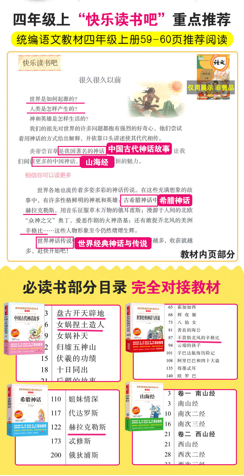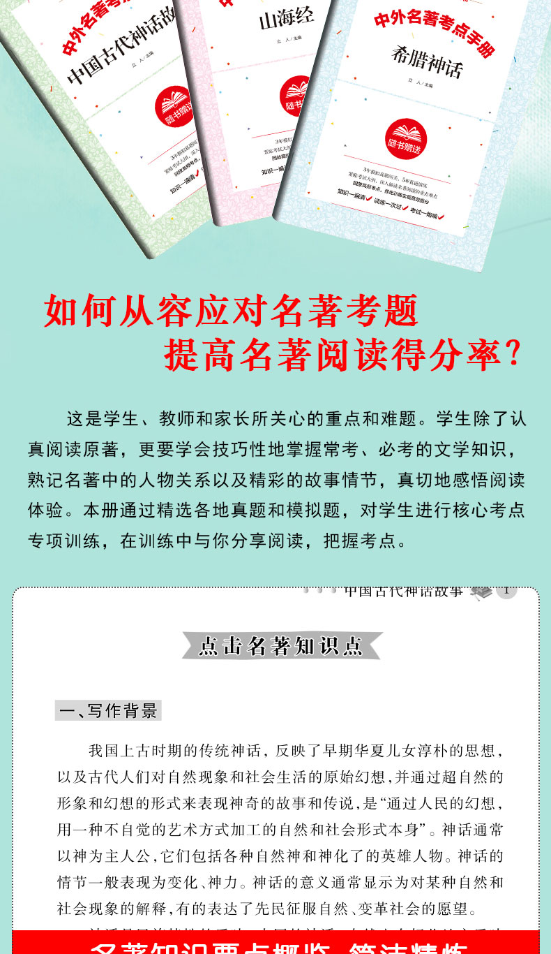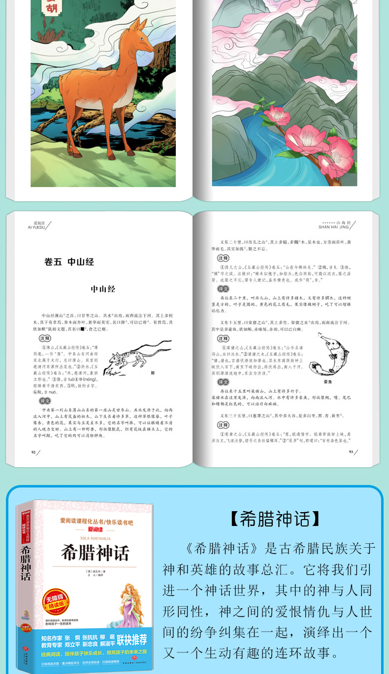 温馨提示:为适应市场需求,本套装于2020年9月5日16点30更新为《中国古代神话故事》《希腊神话》《山海经》《世界经典神话传说》4本套装,并赠送4本配套考点手册。