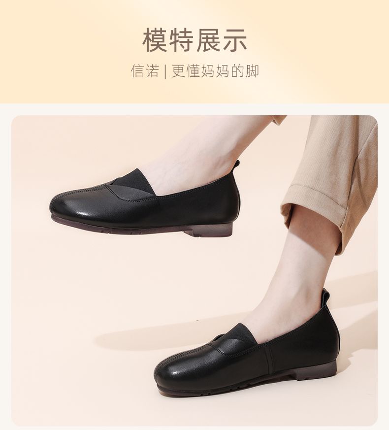 信诺 真皮舒适女鞋 2024新款秋季中老年妈妈鞋子平底单鞋软底皮鞋Q1980-17