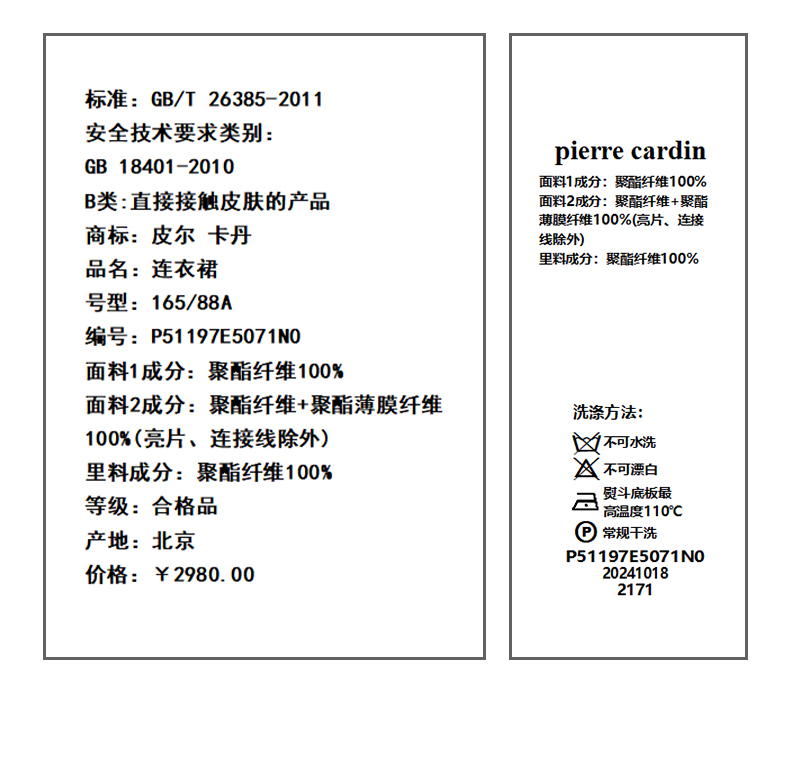 皮尔卡丹女装年秋季新款时尚轻奢水绿连衣裙P1303E1936G0