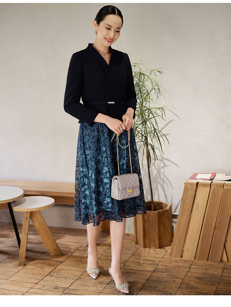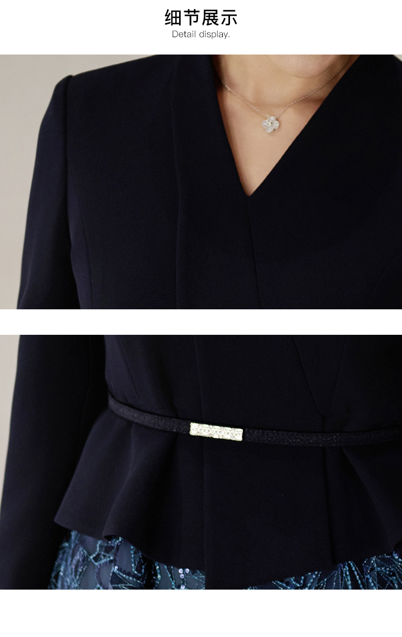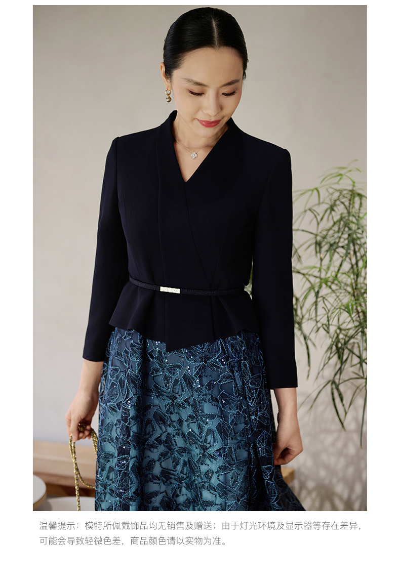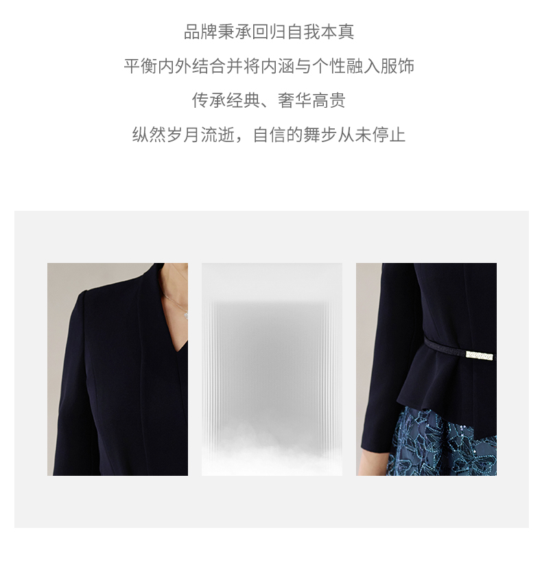 成熟、稳重、高贵典雅、大方得体 融合东方文化的含蓄和法国的浪漫 将创意的艺术性与消费需求相结合 为自信女性塑造高品质场合服装