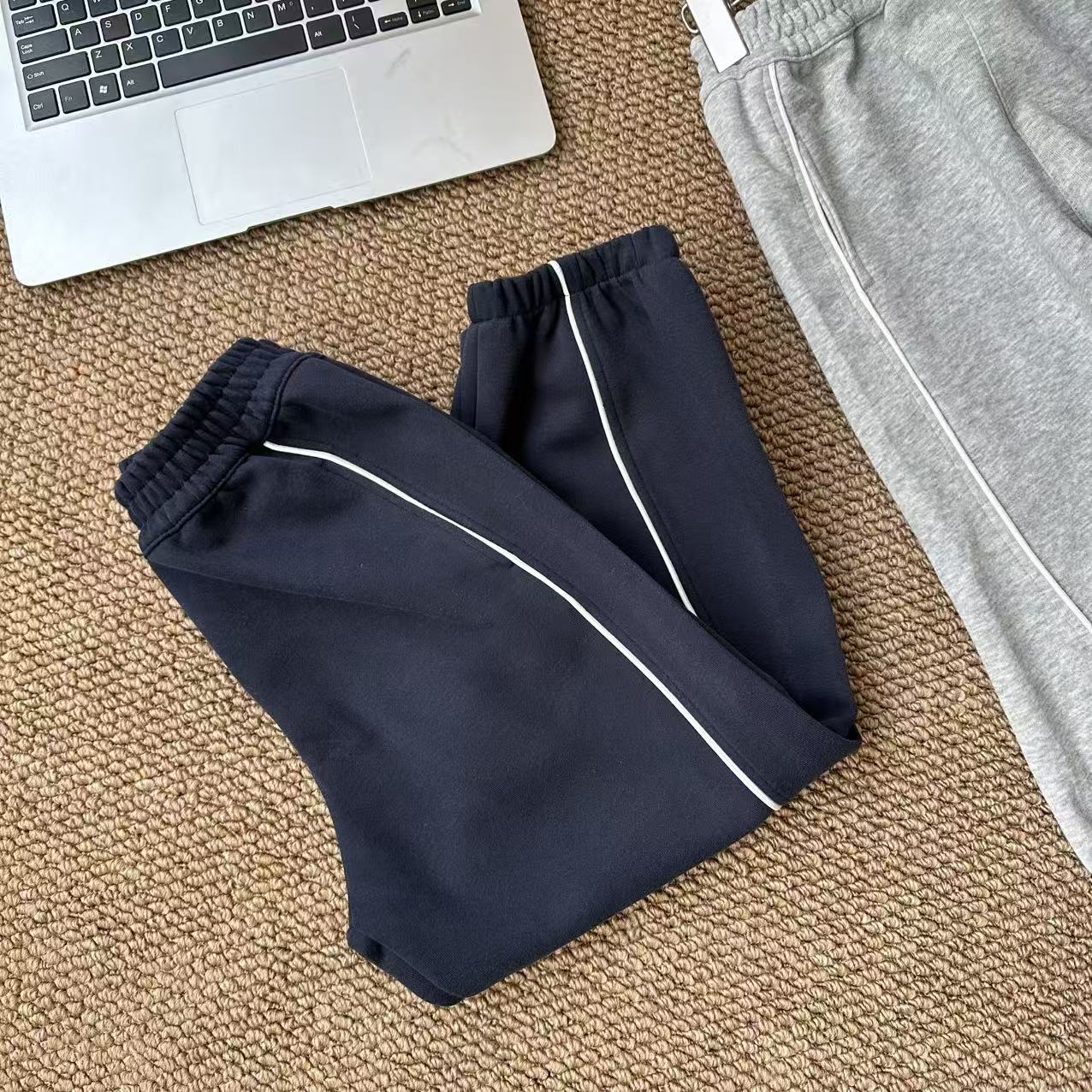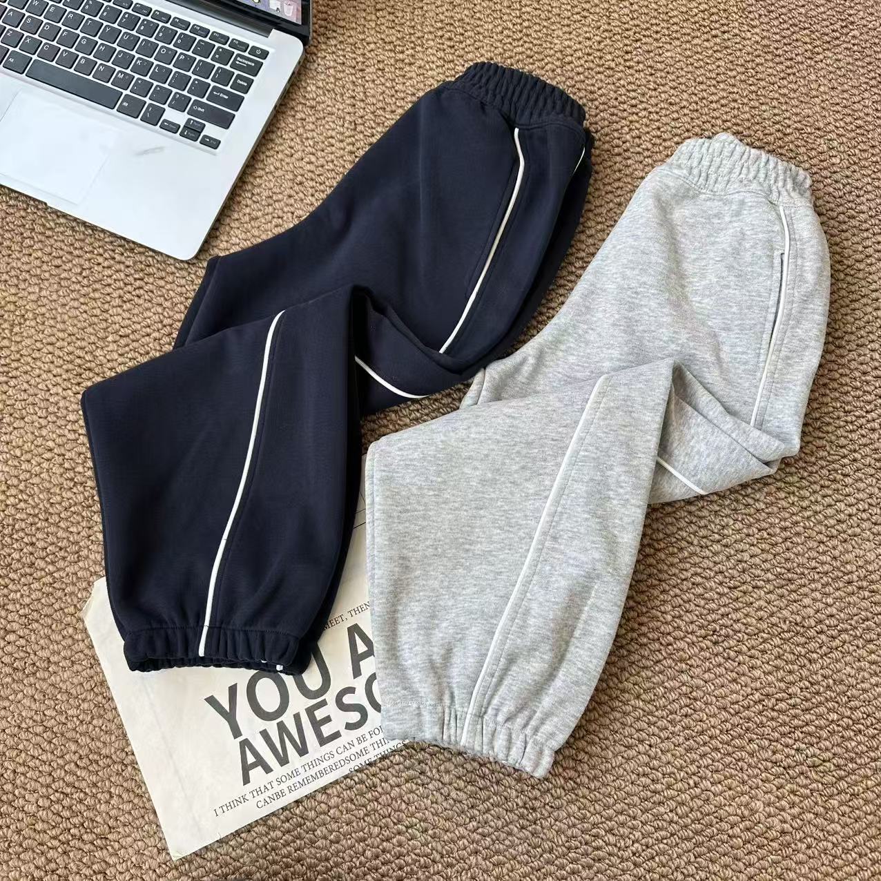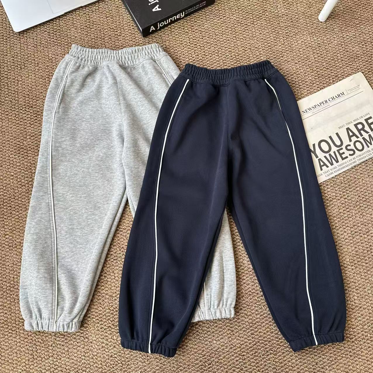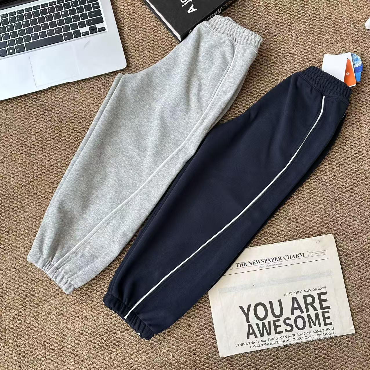 26年新款双压条运动针织束脚裤中大童宽松休闲织带毛圈卫裤校园长裤