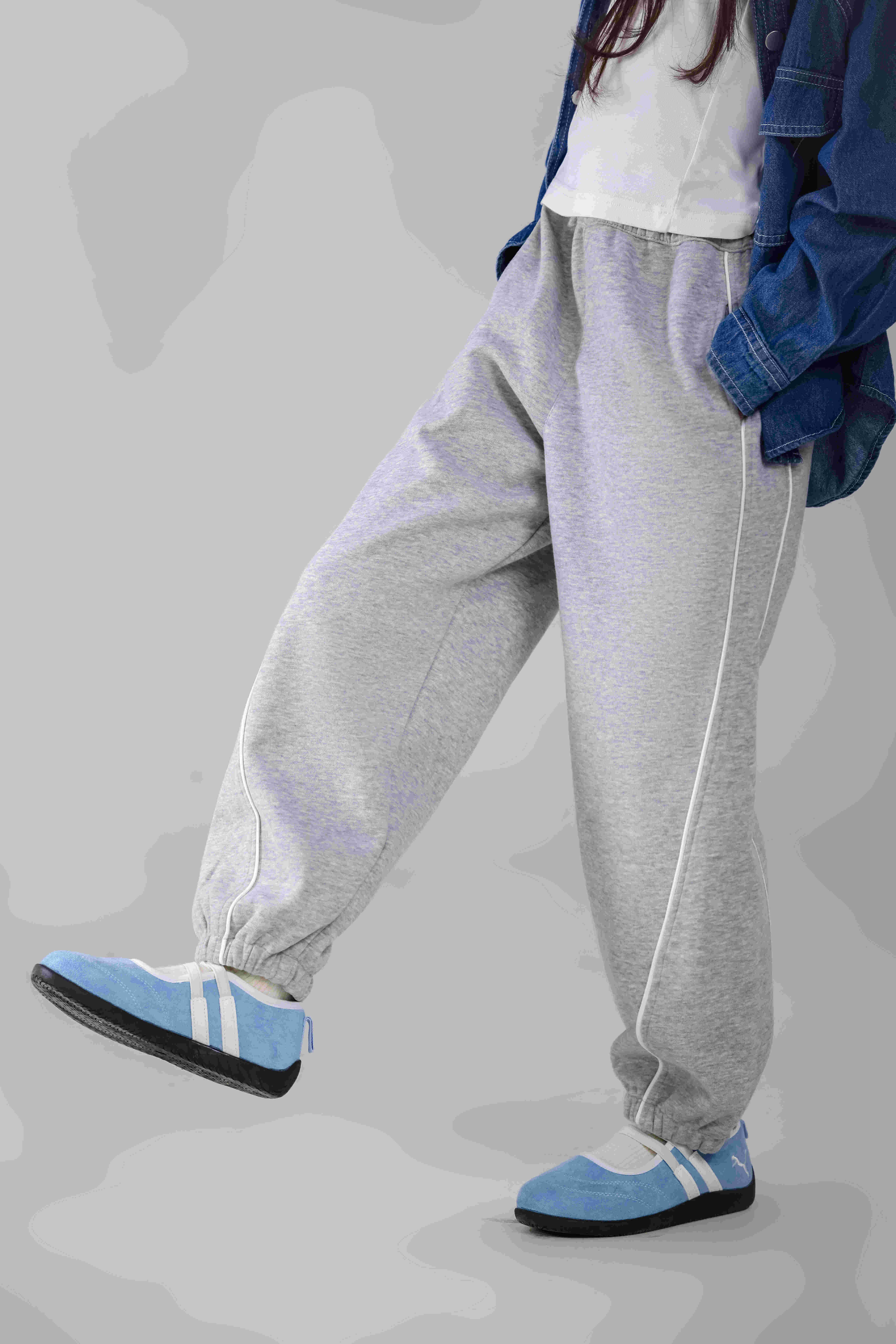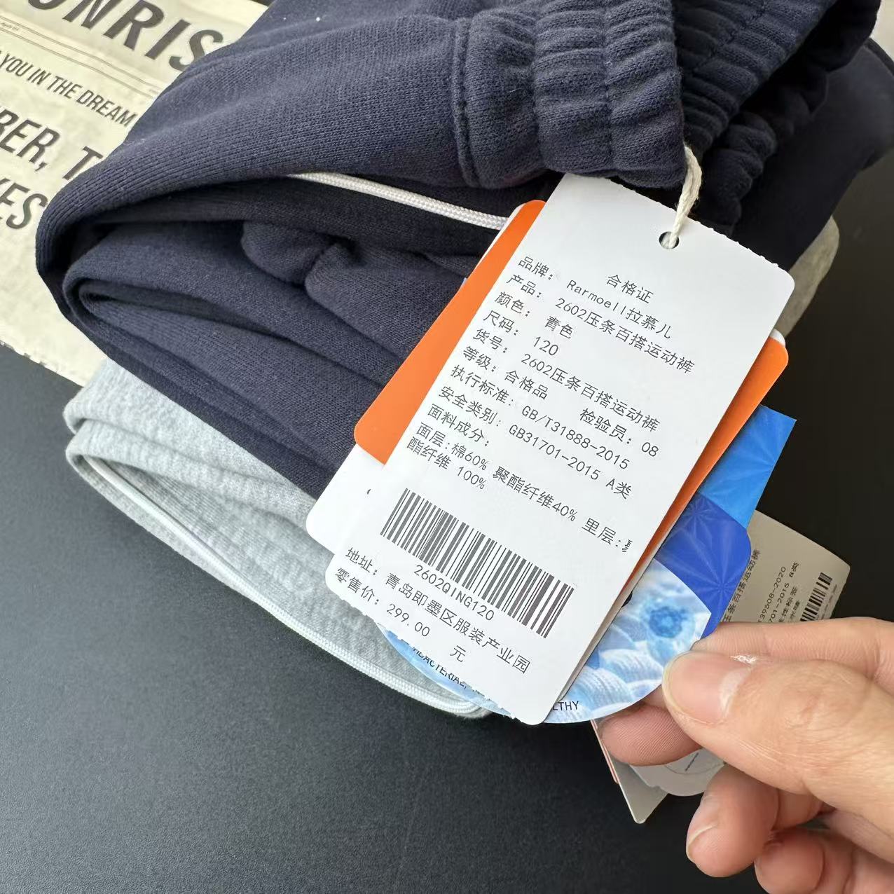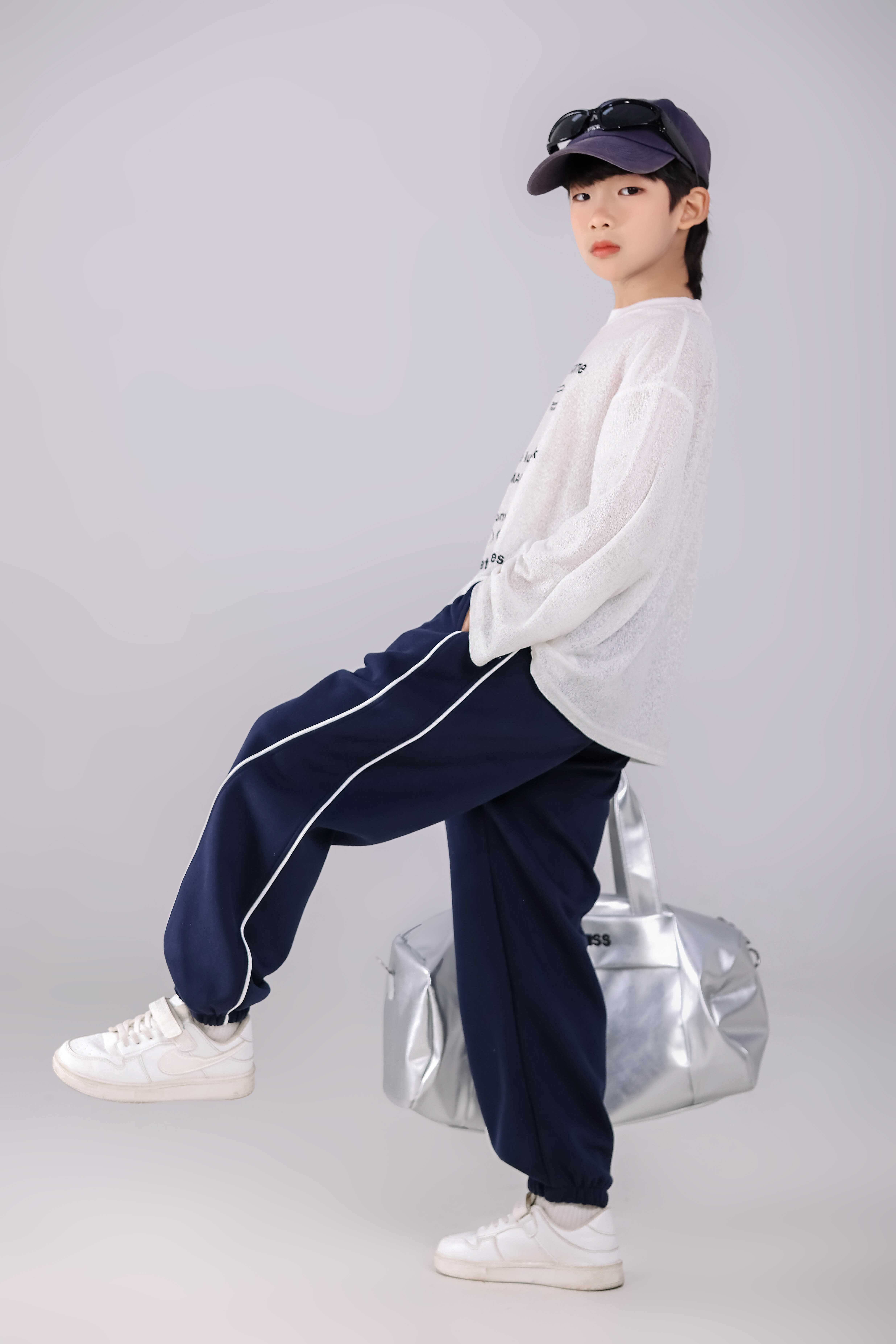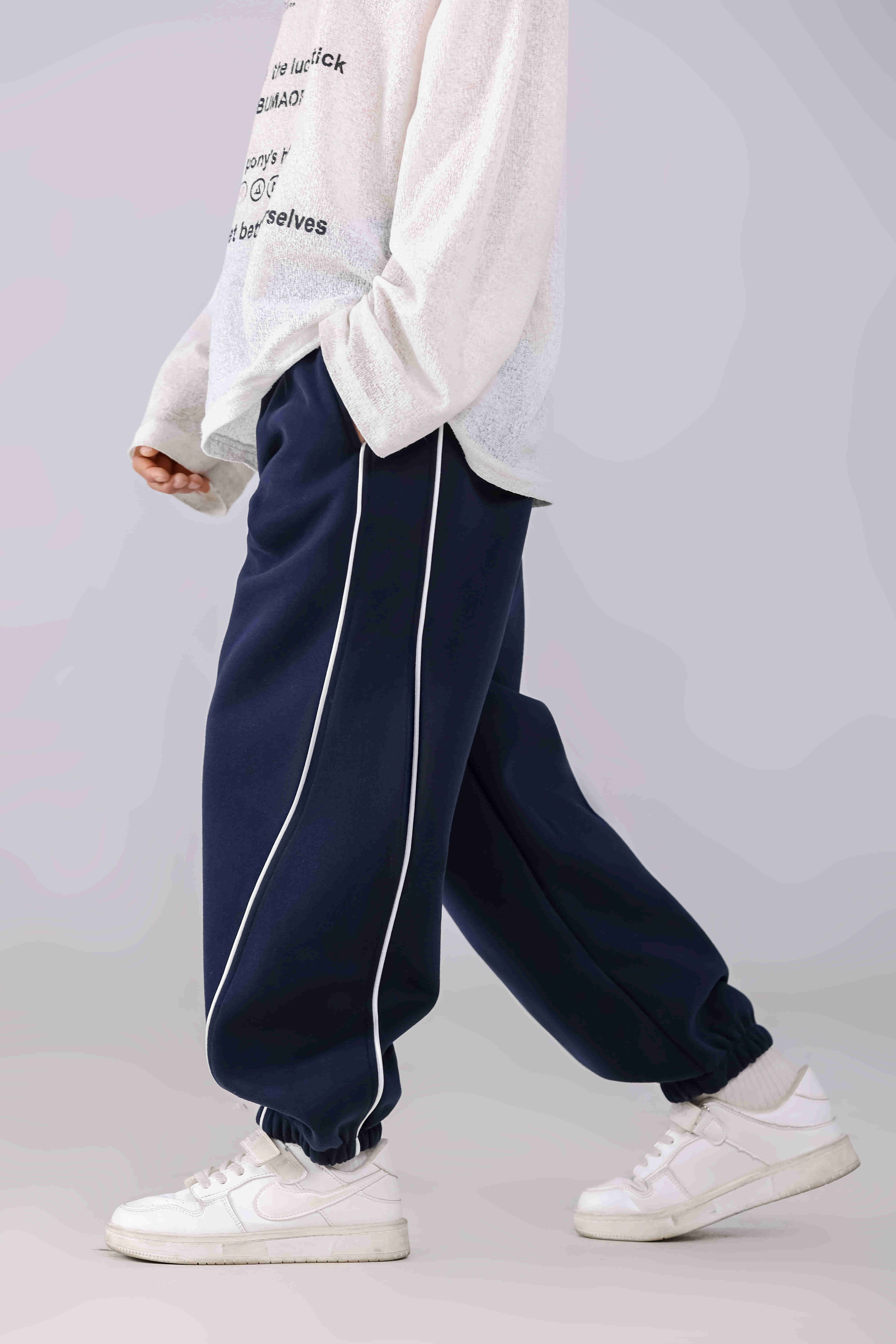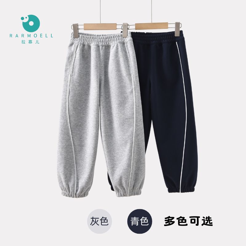 26年新款双压条运动针织束脚裤中大童宽松休闲织带毛圈卫裤校园长裤