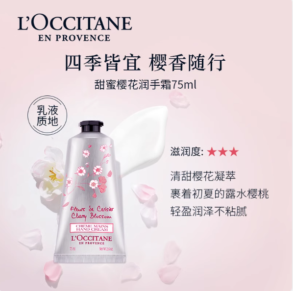 L'occitane/欧舒丹樱花护手霜75ml+LA MER/海蓝之谜唇膜9g/唇蜜7ml