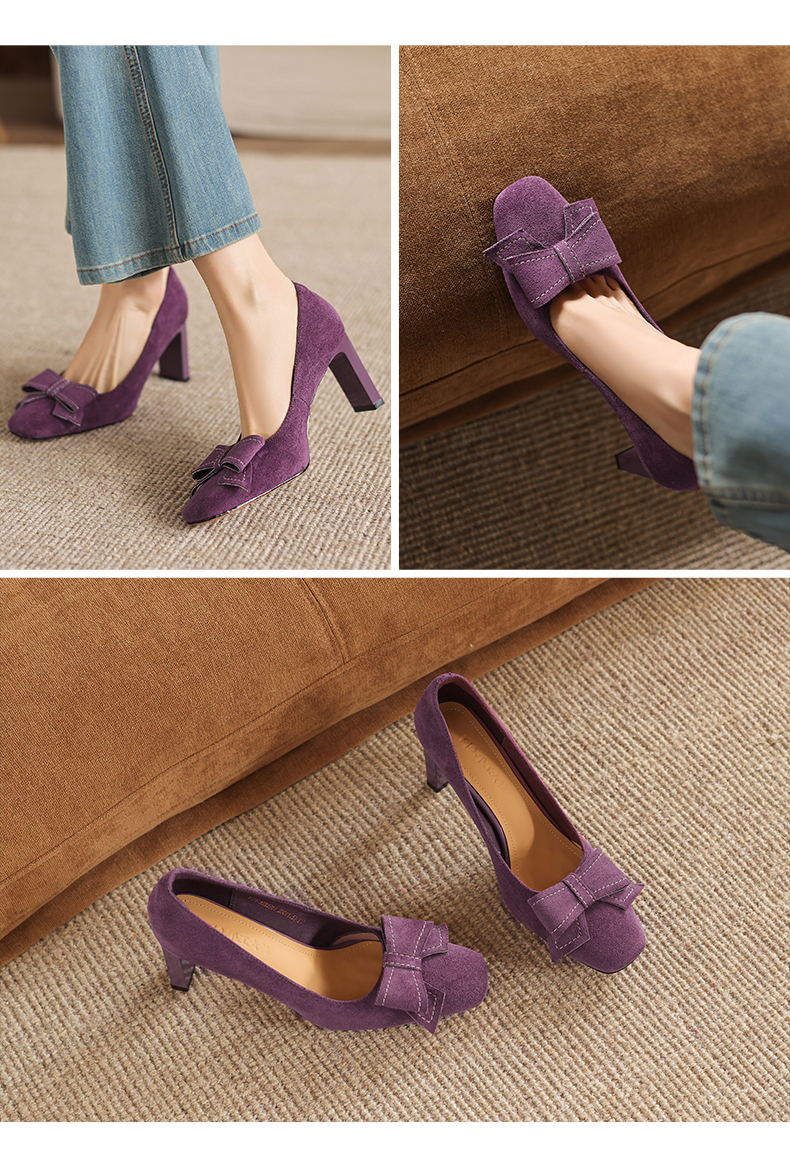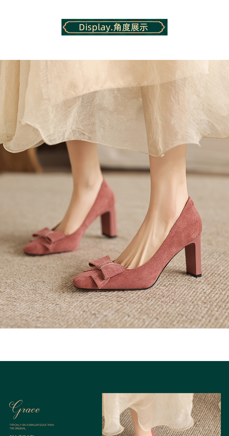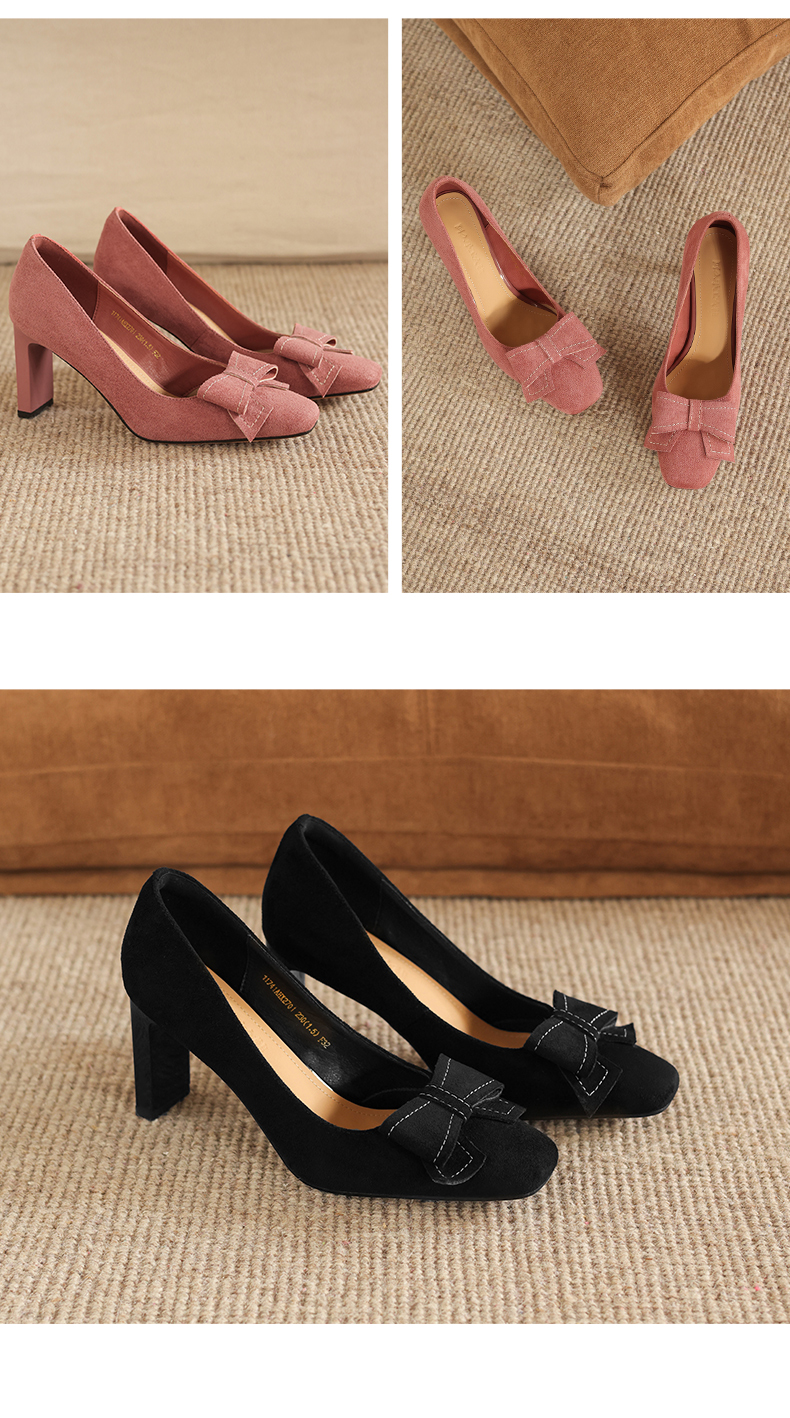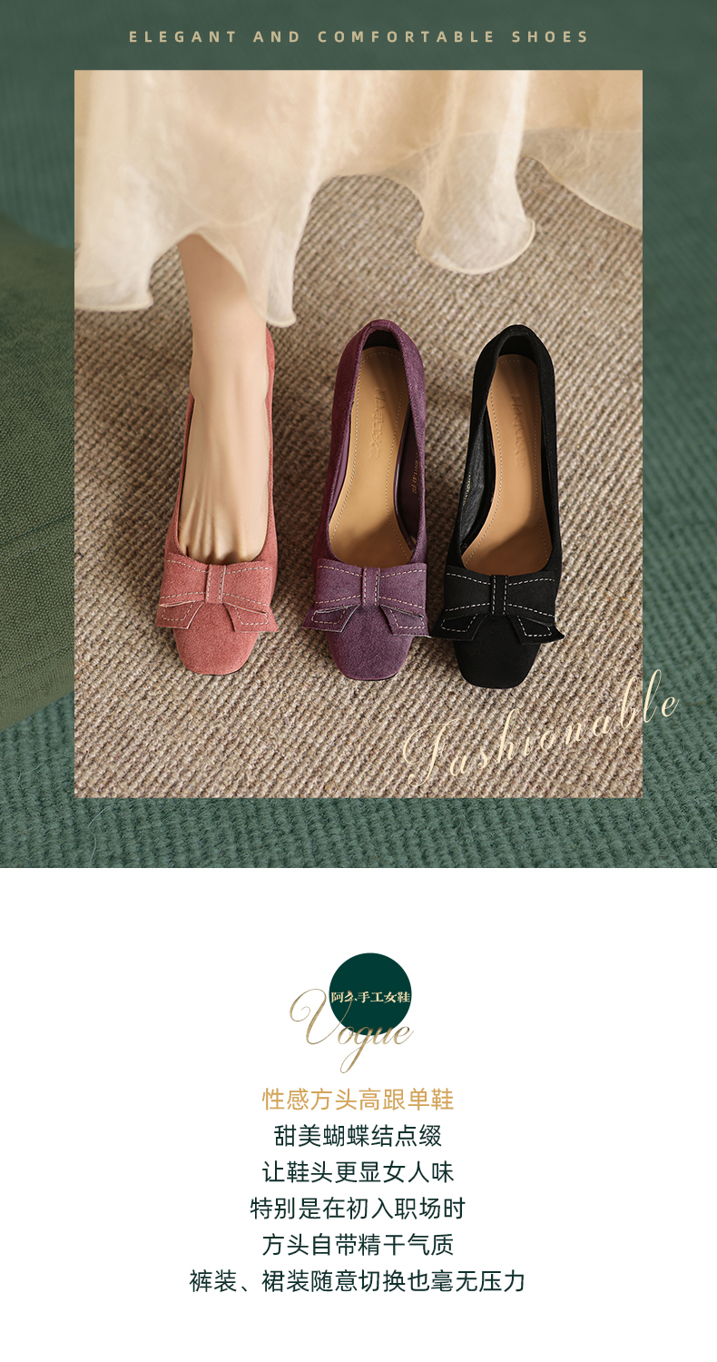 阿么手工女鞋2026春季优雅蝴蝶结浅口单鞋百搭新款气质高跟鞋8CM
