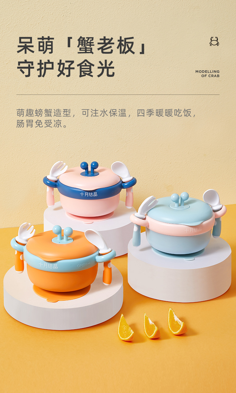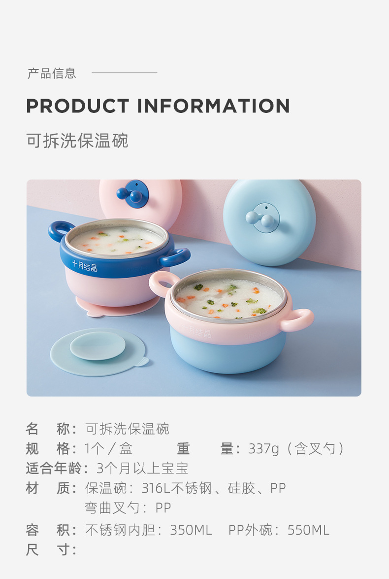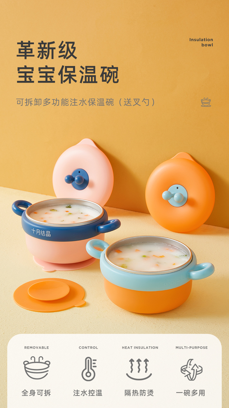 十月结晶婴儿保温碗辅食碗婴幼儿注水宝宝碗餐盘吸盘碗