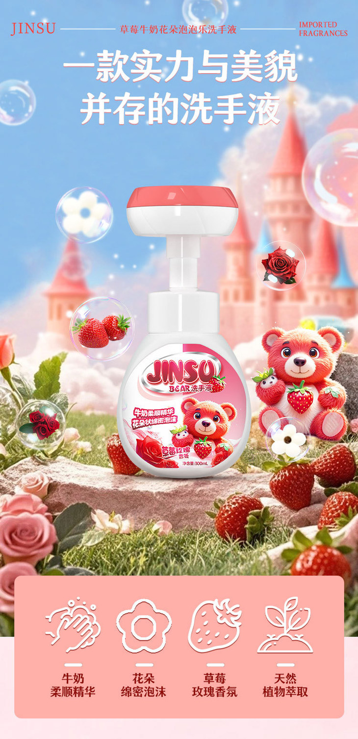 「9.9包邮!买2送1」慕斯花朵泡沫洗手液300ml 按压瓶居家日用洗手液