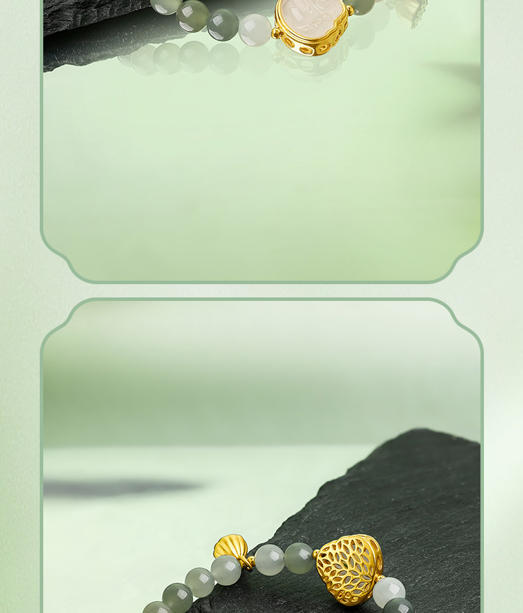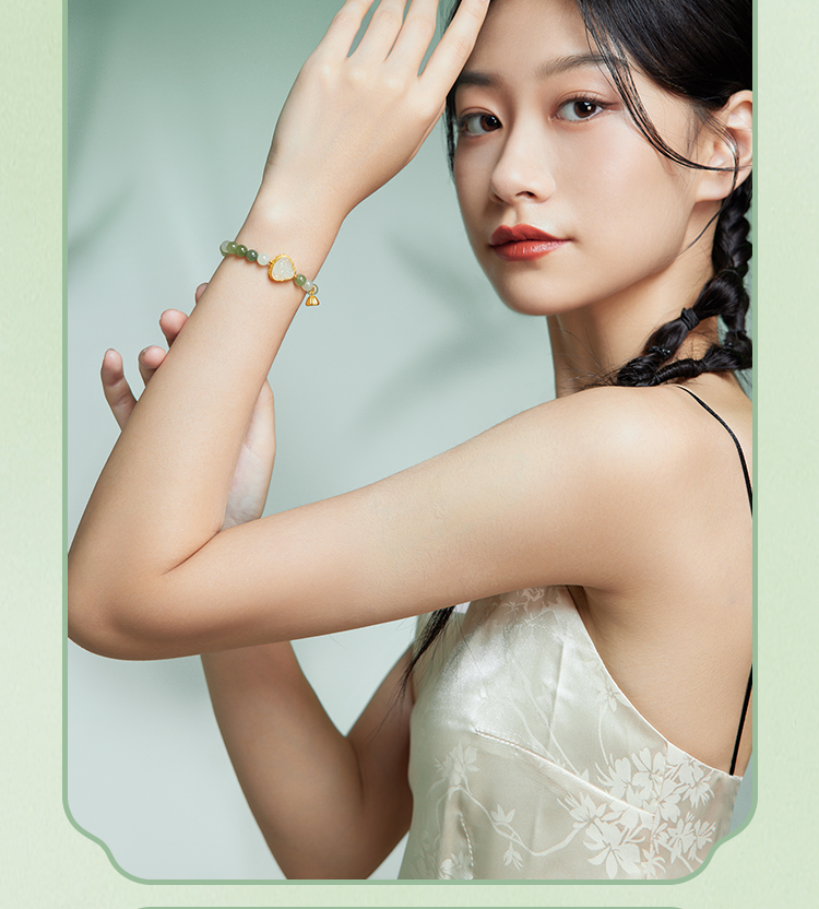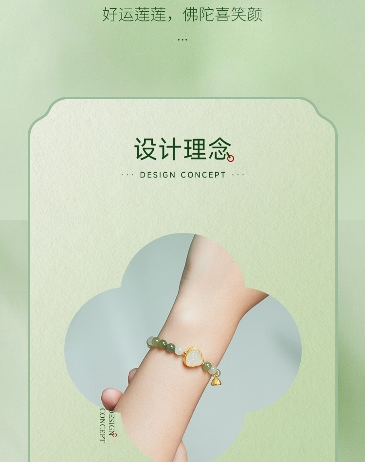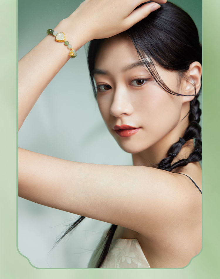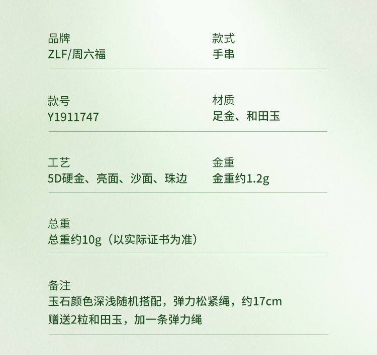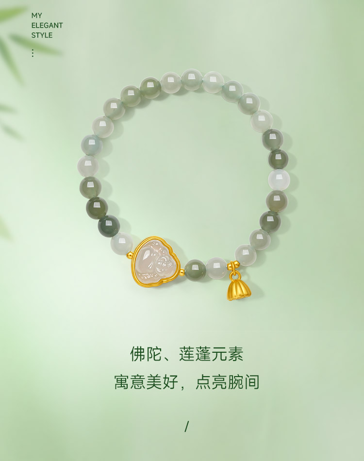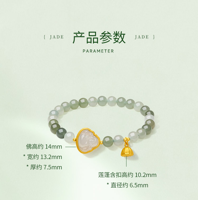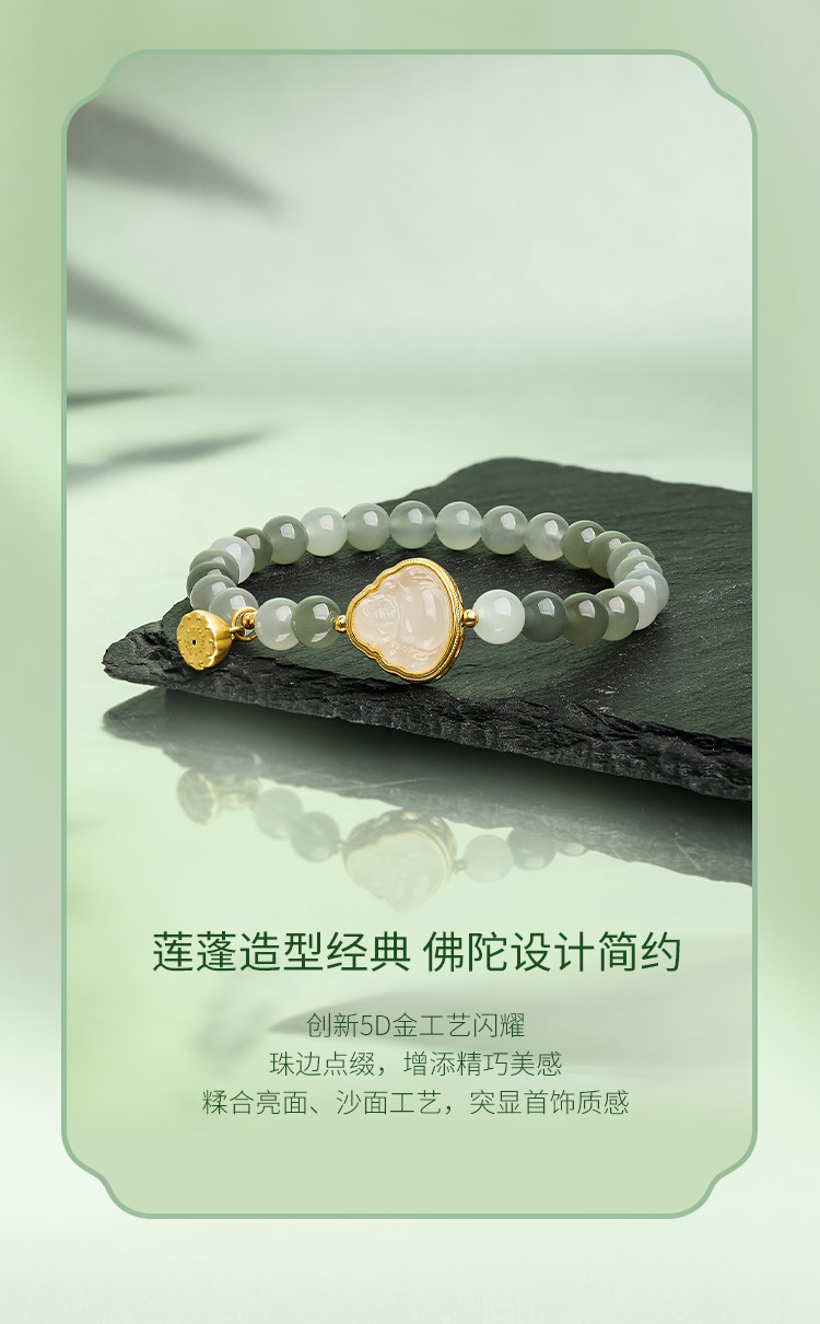 周六福和田玉手串女款黄金玉石莲蓬佛陀手链官方旗舰店送女友礼物