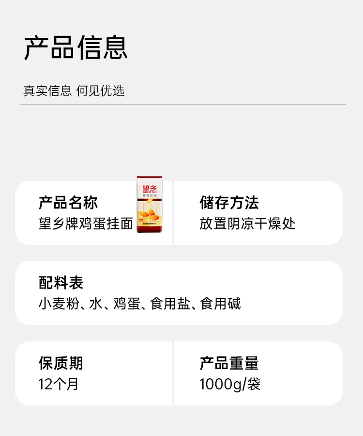 1kg 望乡龙须挂面/鸡蛋挂面 爽滑劲道拉面 方便速食低脂肪早餐汤面面条拌面