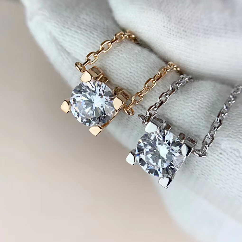 高碳钻的震撼你们懂!项链每个细节非常到位,一颗闪耀着光芒的珠宝,吸睛高贵!简单又不浮夸!完美诠释高级的品味。越是简单款越大气经典!!此款零倒膜,底托整体五轴精雕,视觉效果特别好,正面的爪子是绝对平面的,非常华丽耀眼!超高性价比!!!!
