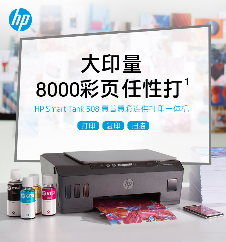 惠普(HP) Smart Tank 508 惠彩墨仓连供多功能打印一体机 打印 复印 扫描 商用办公