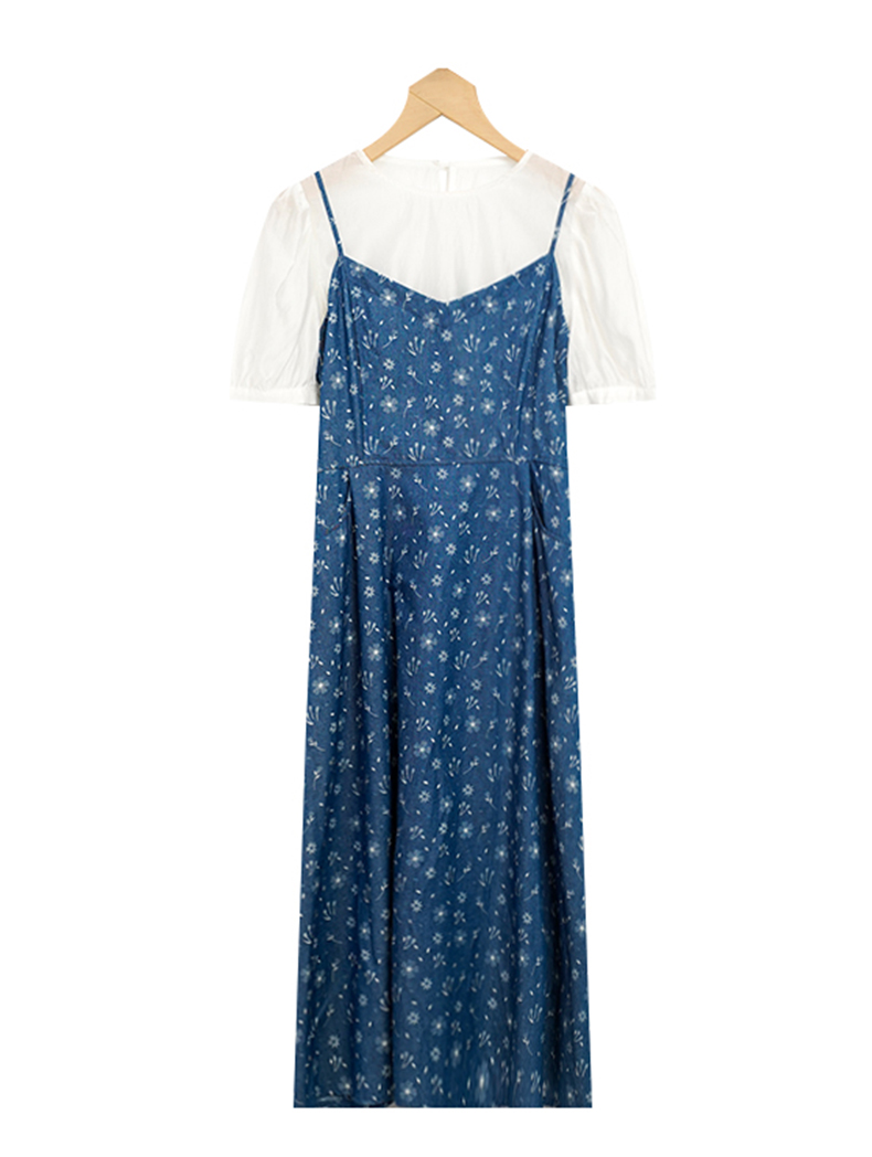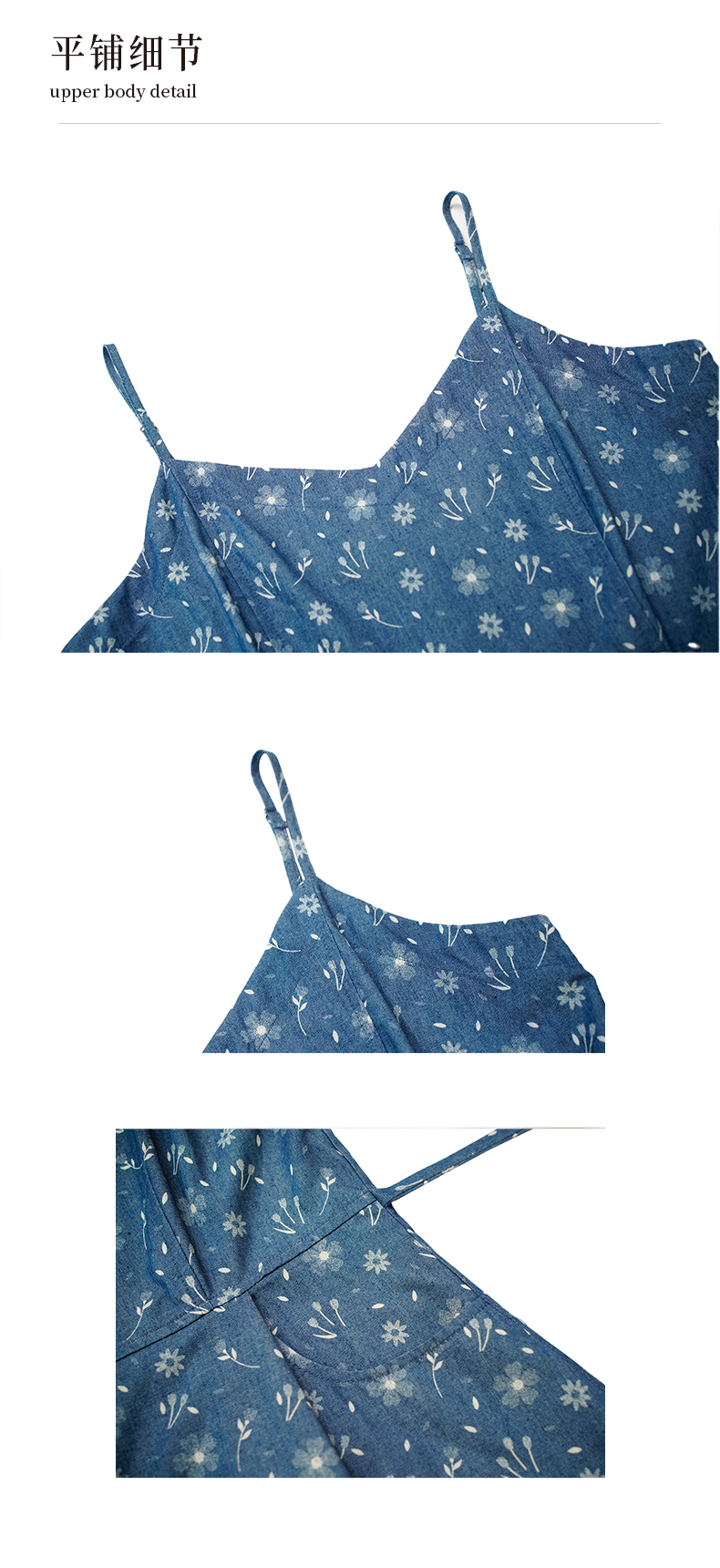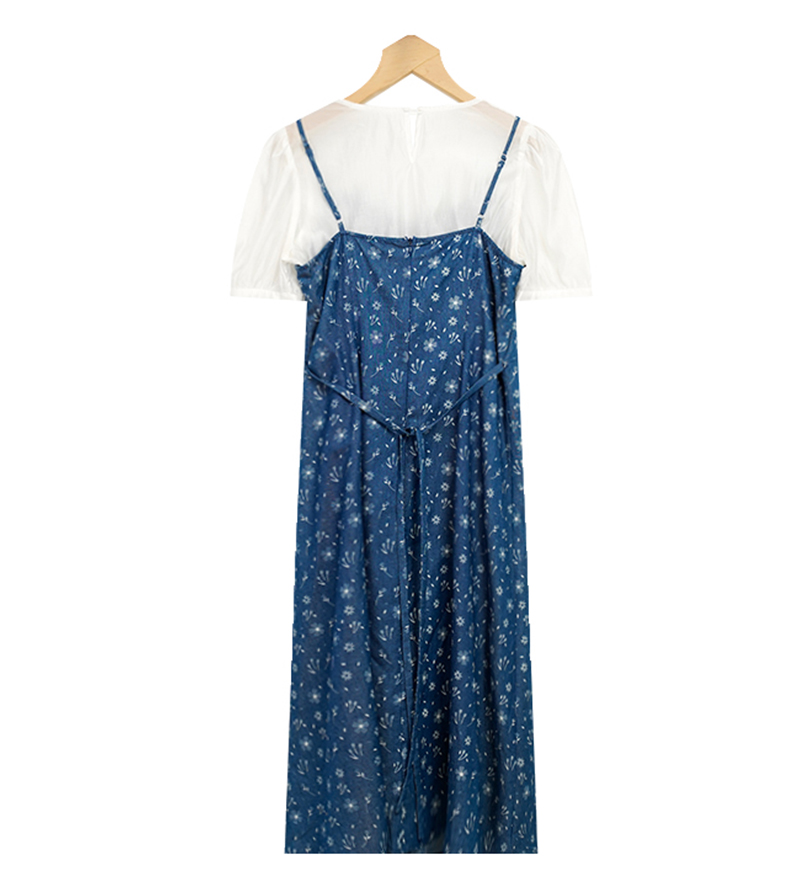 NUTS夏日穿搭高级感法式蓝色碎花吊带连衣裙子套装女221107346