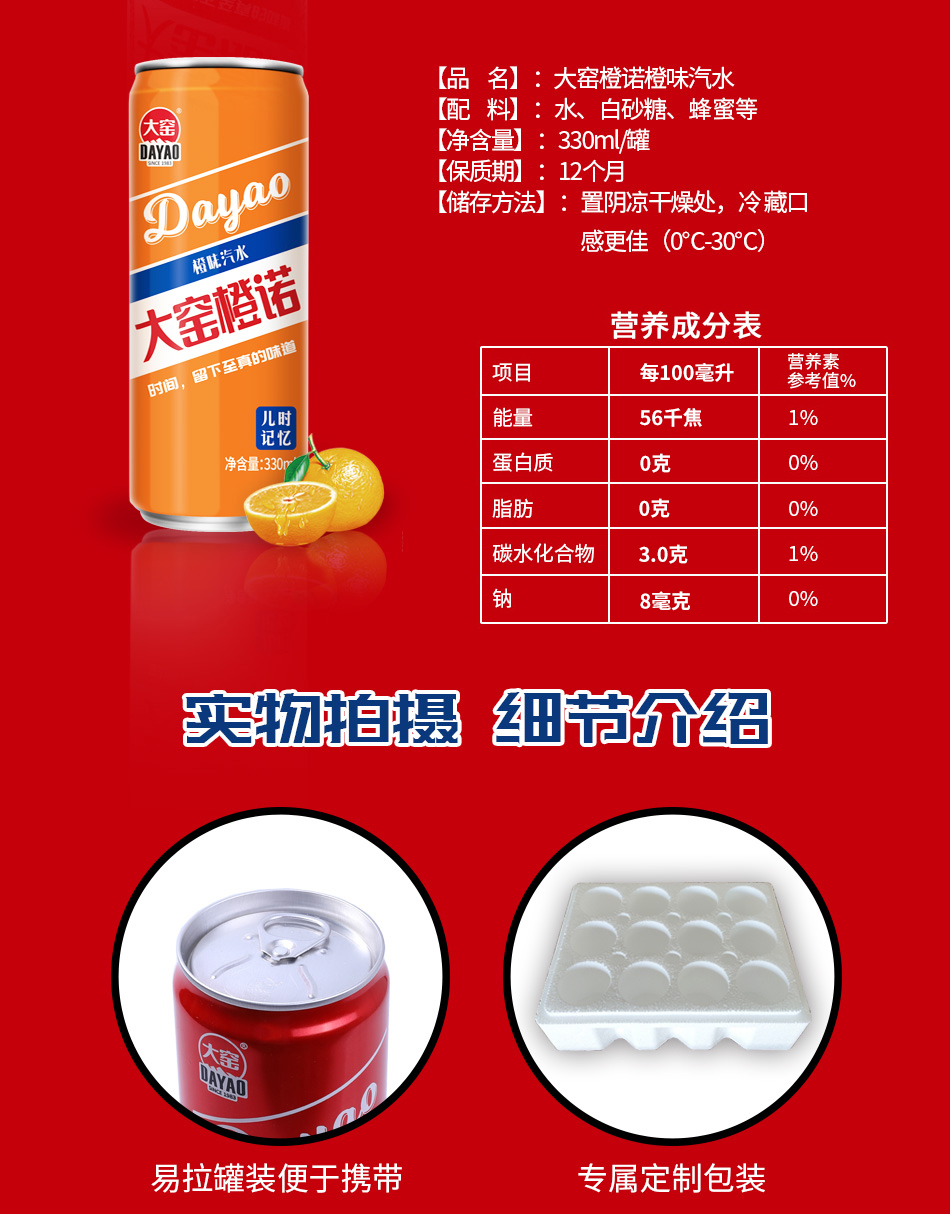 大窑嘉宾330ml*12罐 橙味 老汽水 碳酸饮料 童年怀旧饮料批发包邮 便携摩登罐原味橙味口味任选