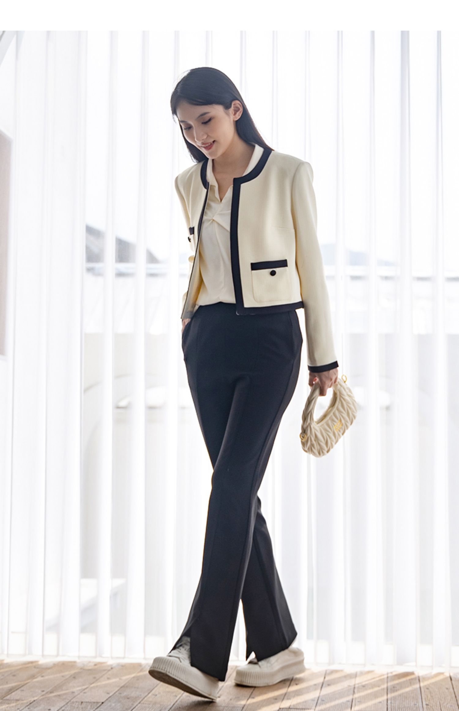 NUTS2023春秋季新款黑色开叉休闲西装裤女高腰显瘦裤子女4340703A1