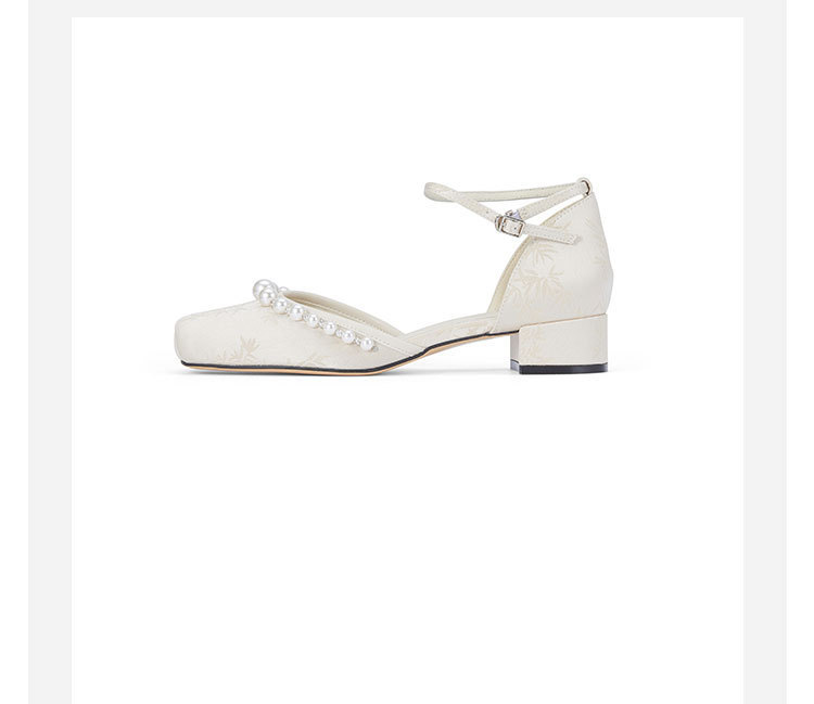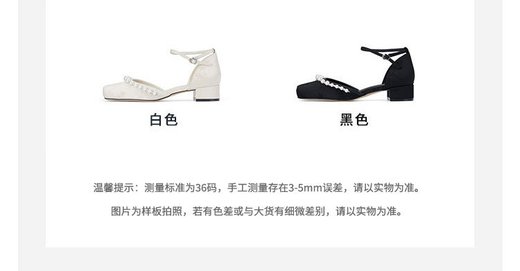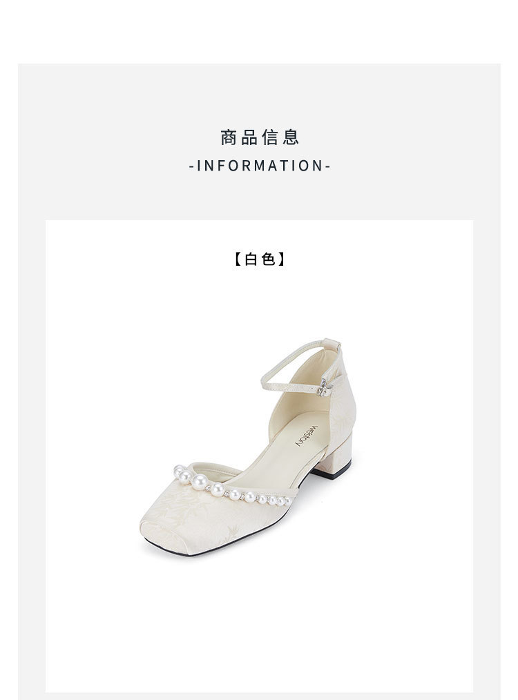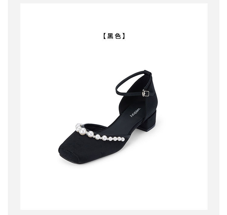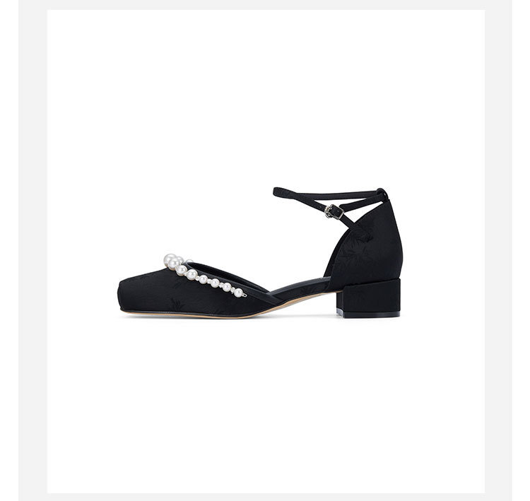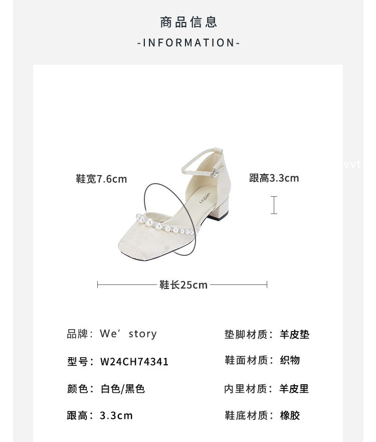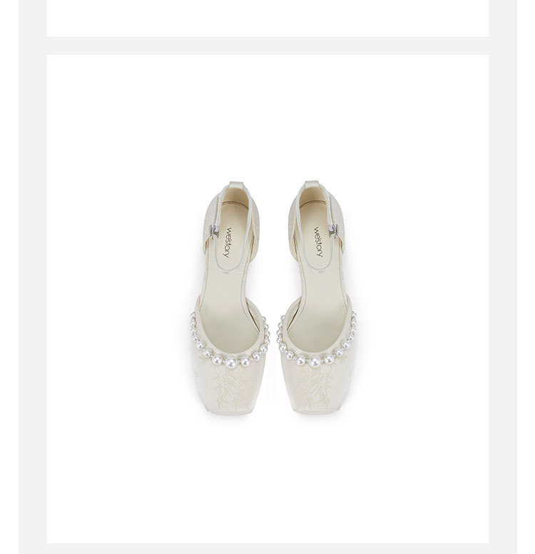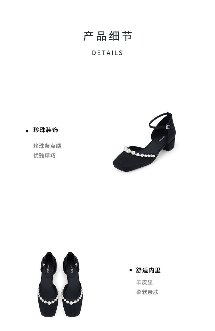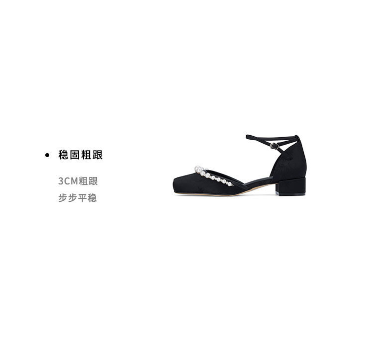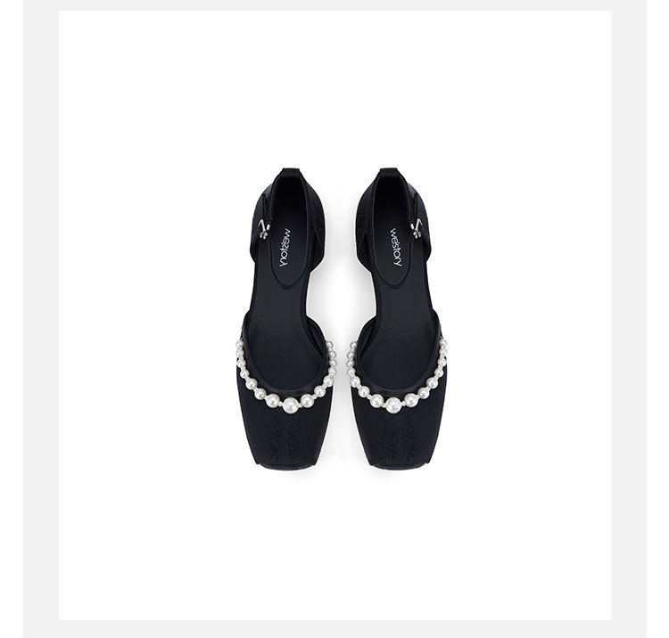 westory夏季新款方根中跟珍珠饰扣方头搭扣包头后空鞋W24CH74341