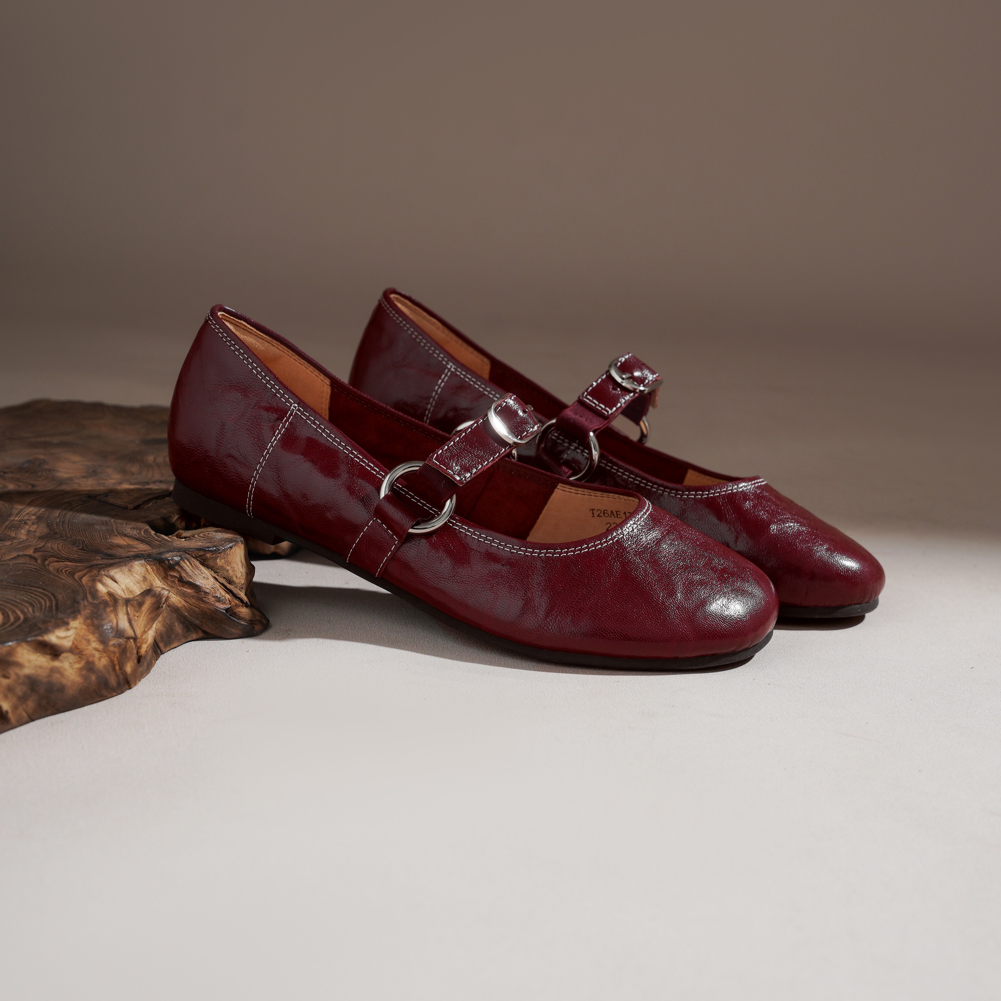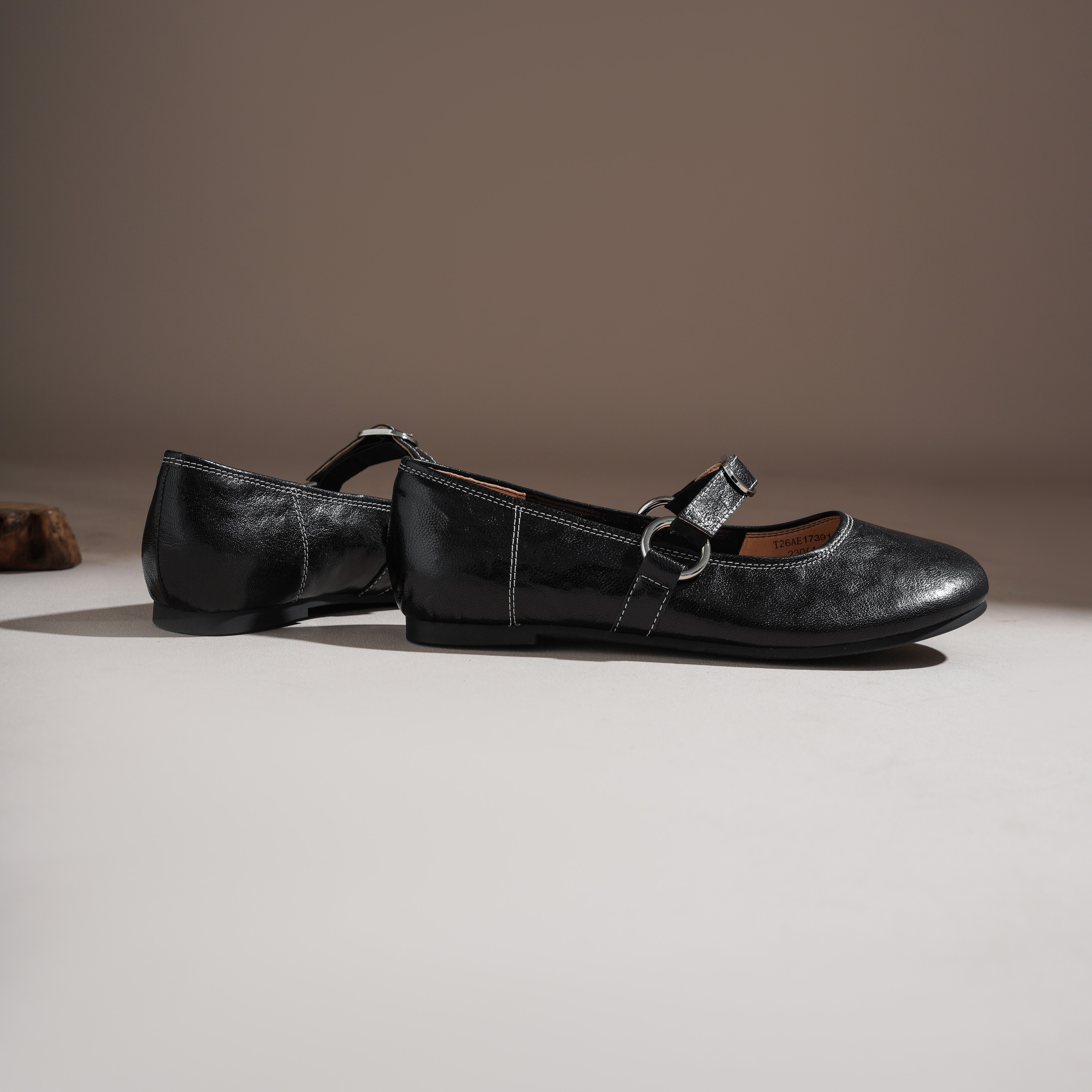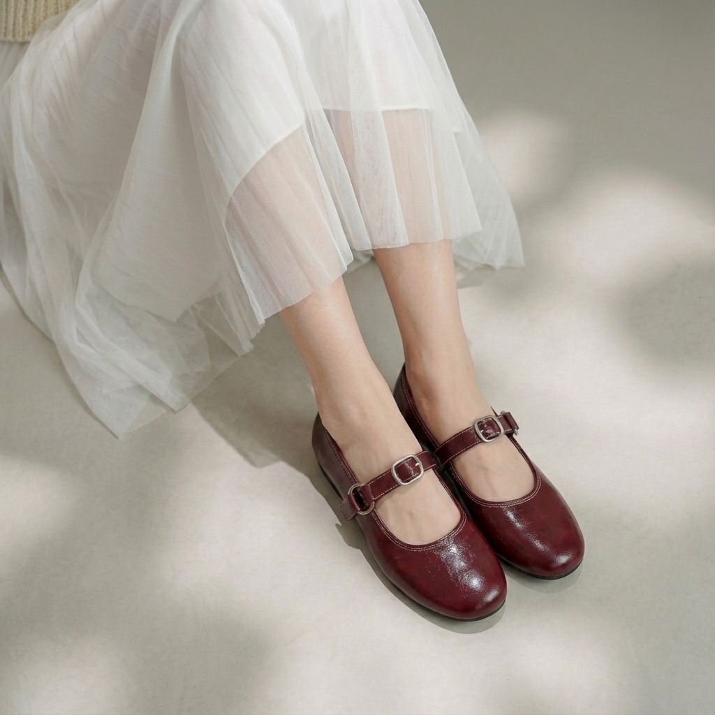 【羊皮革】西村名物2026年春季新款舒适平底原皮纯色浅口单鞋玛丽珍鞋T26AE17391