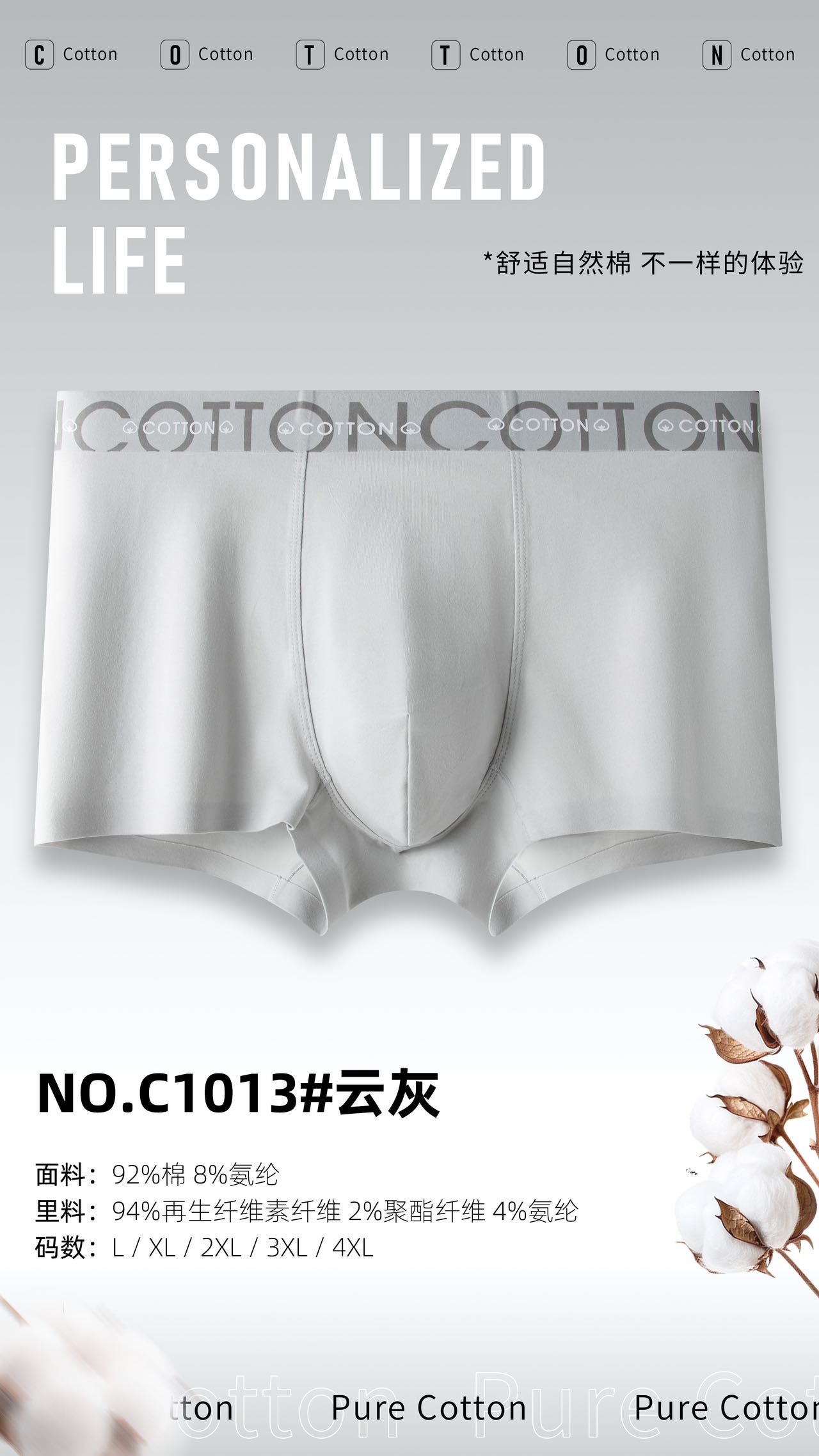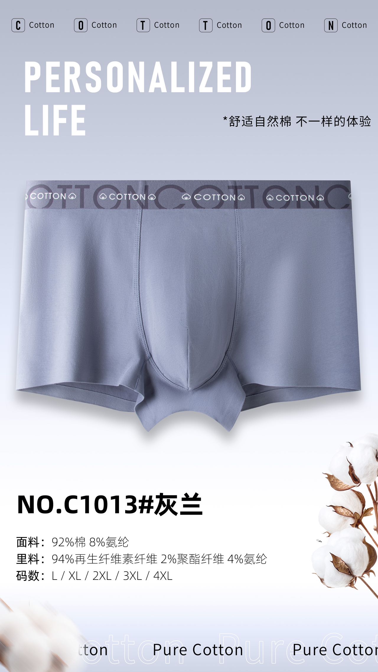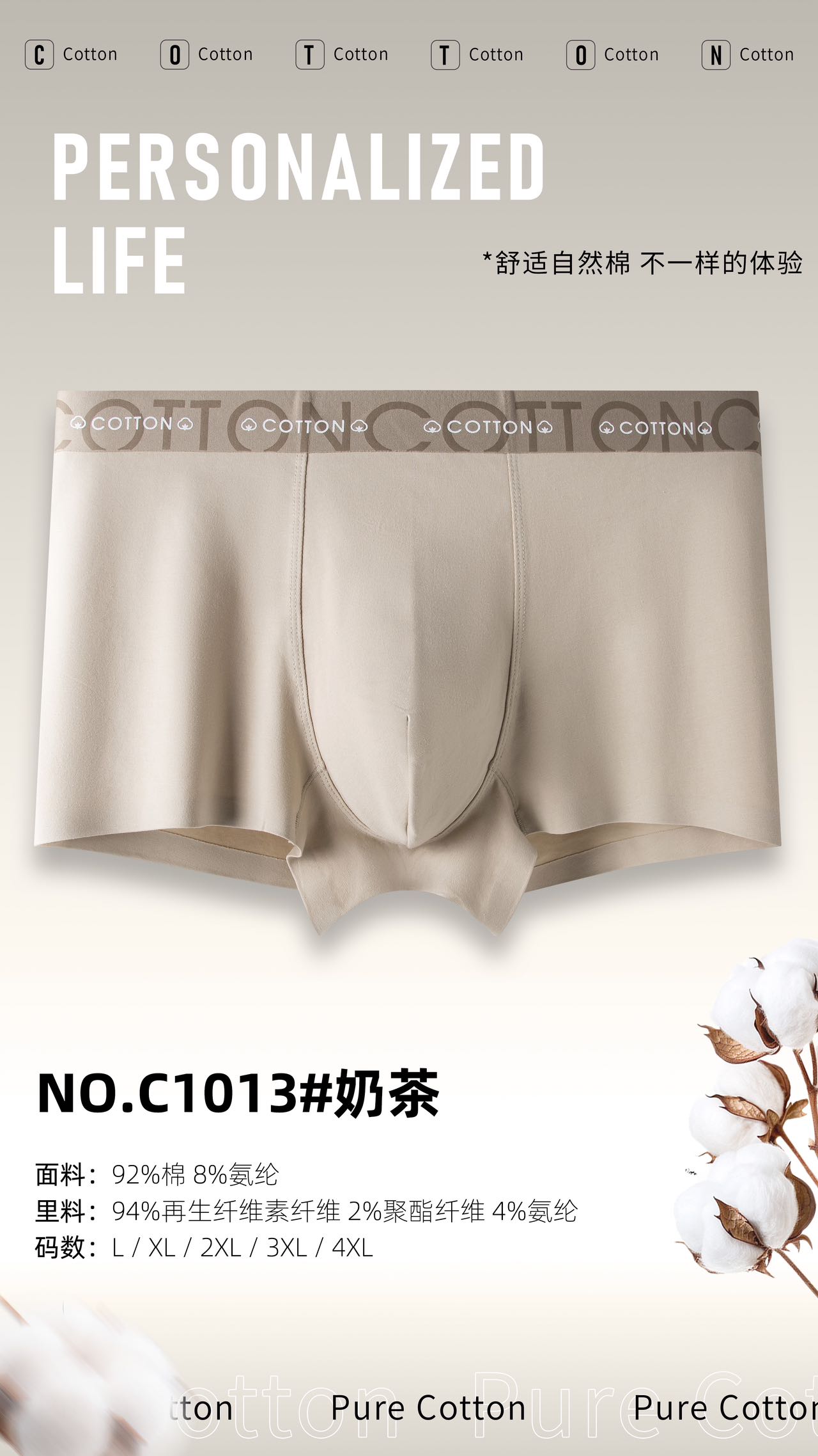 男士精梳棉腰头印花无痕棉花糖腰头撞色平角内裤1013