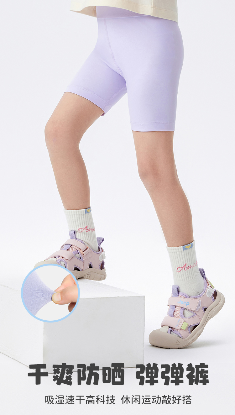 【UPF50+】【90-140】【MQDmini】女童夏款速干纯色五分骑行裤打底裤短裤裤子