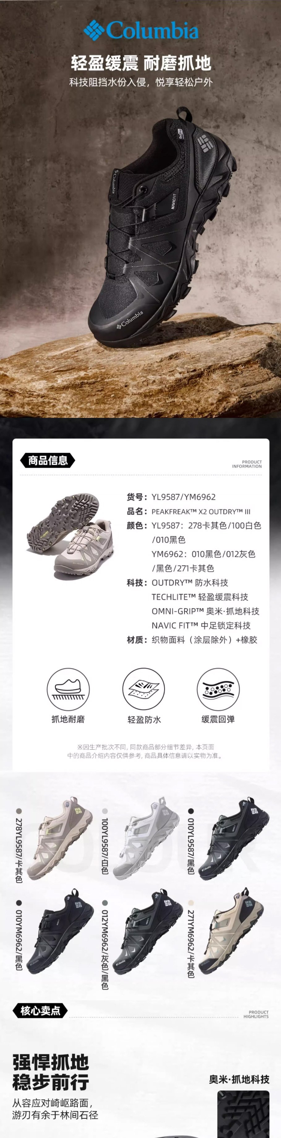 哥伦比亚狂峰X2三代徒步鞋PEAKFREAK男女防水抓地YL9587278