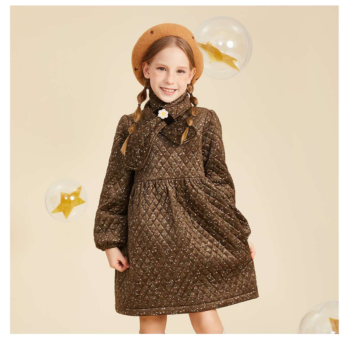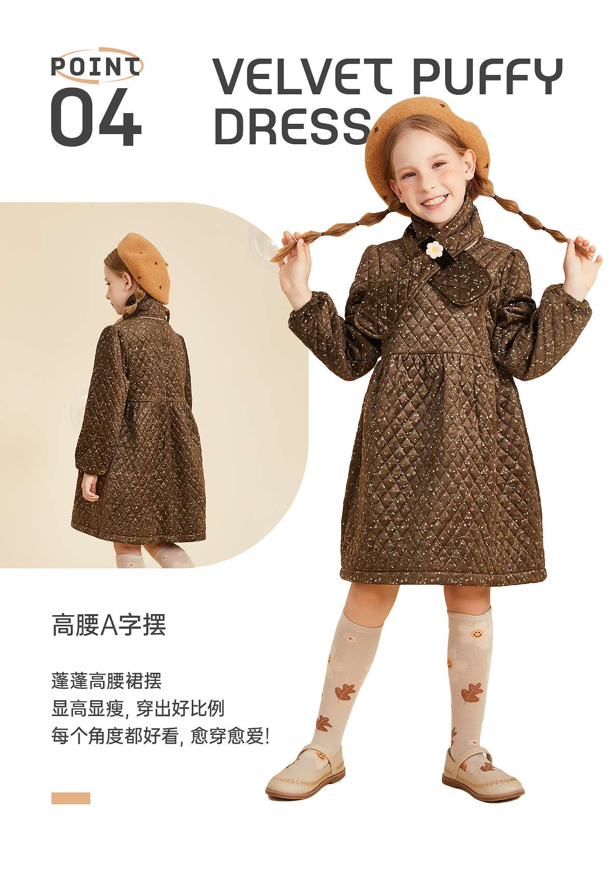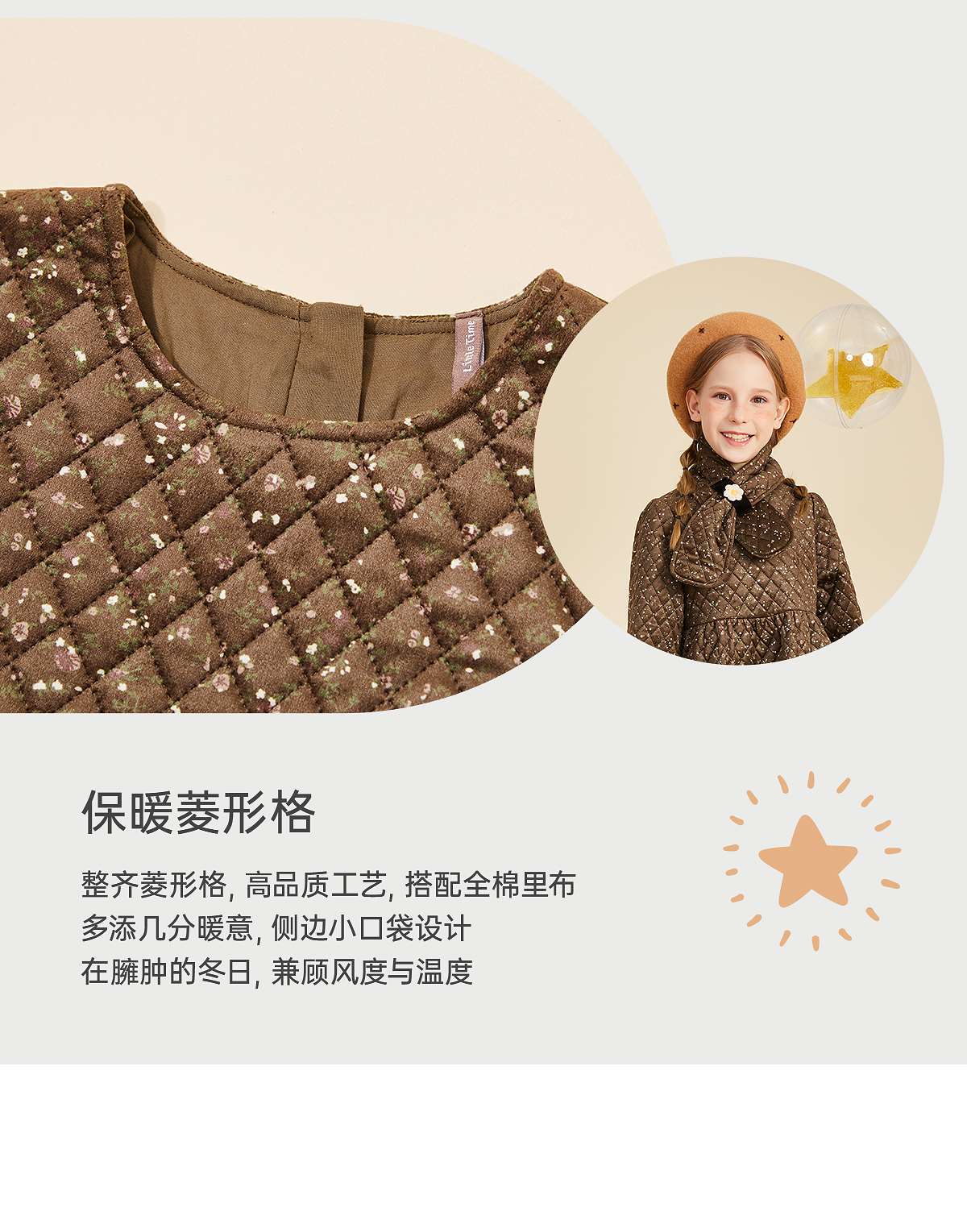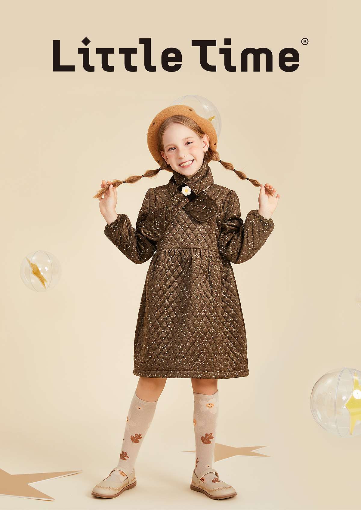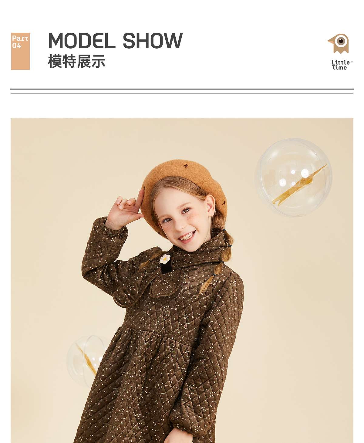 littletime女童丝绒连衣裙秋冬装夹棉加厚2021新款长袖碎花儿童裙