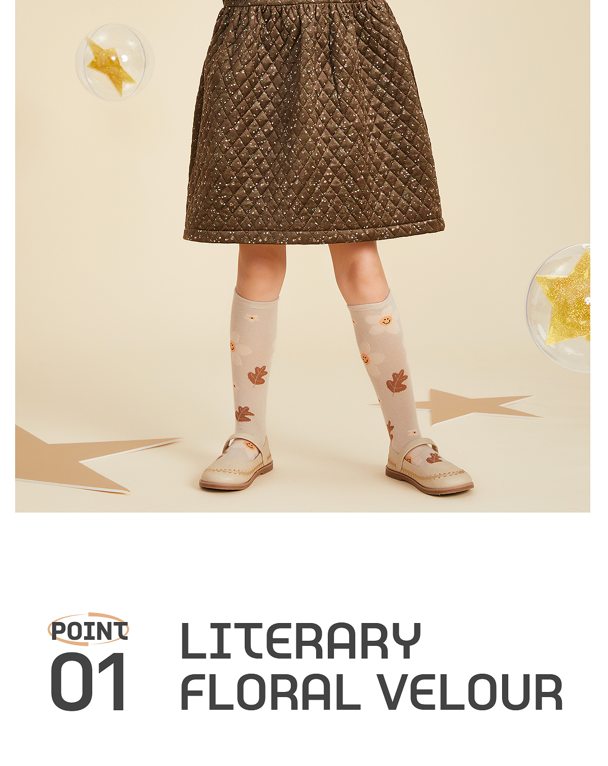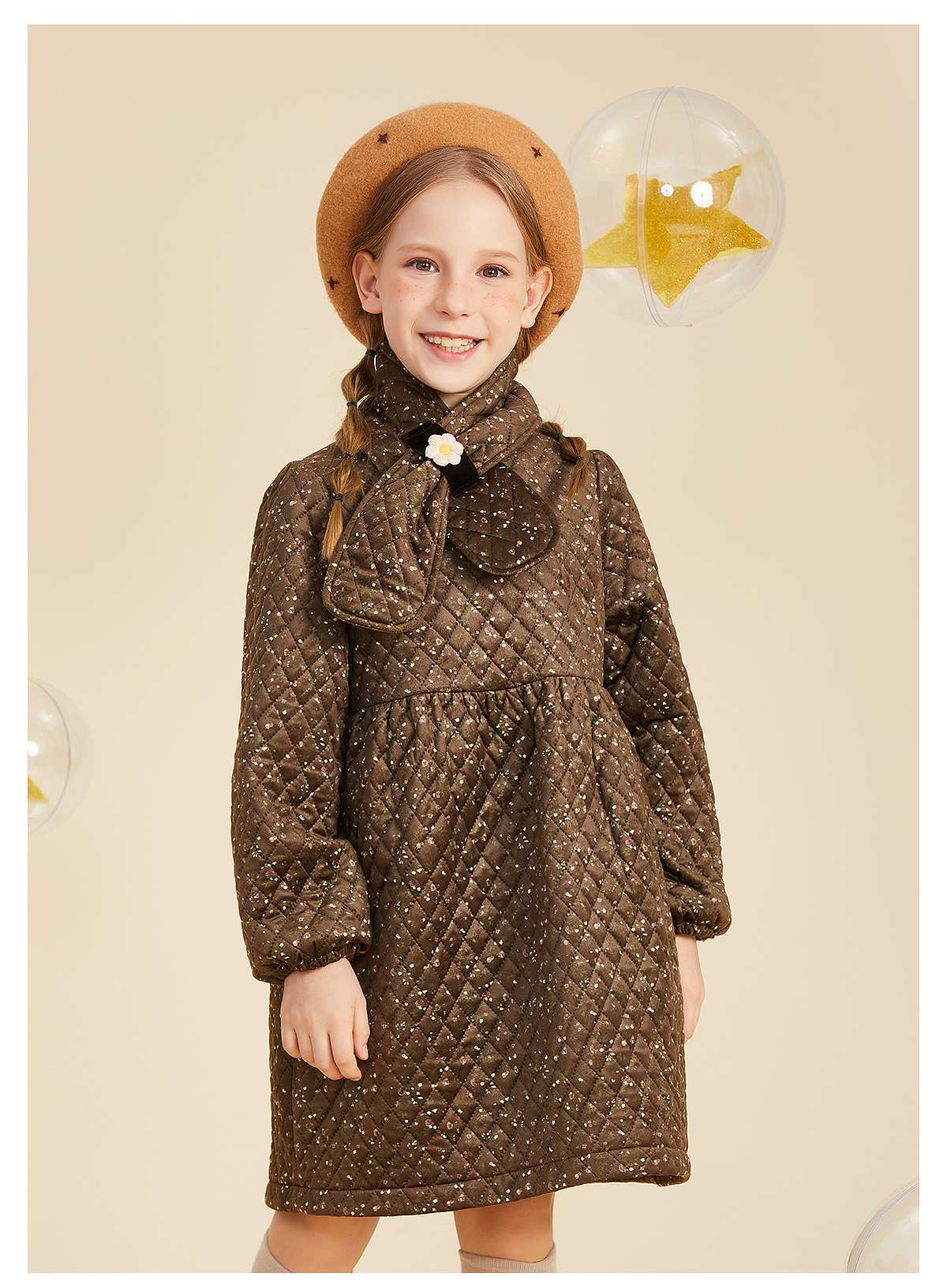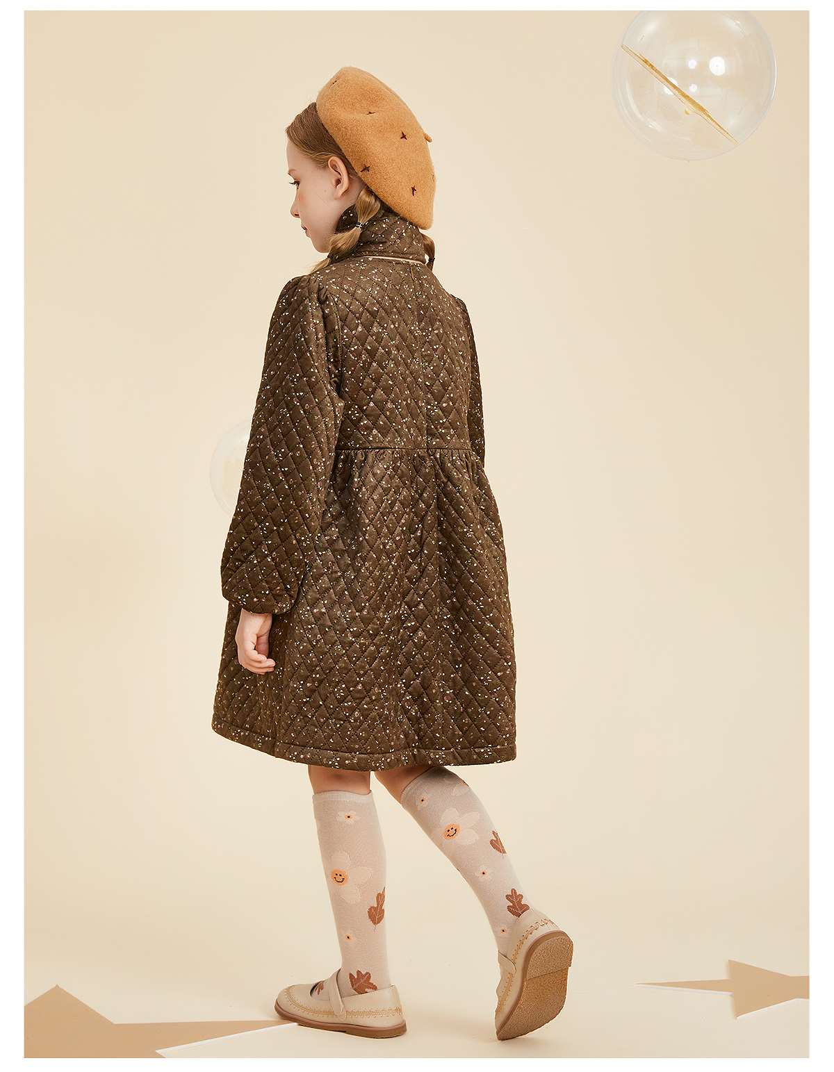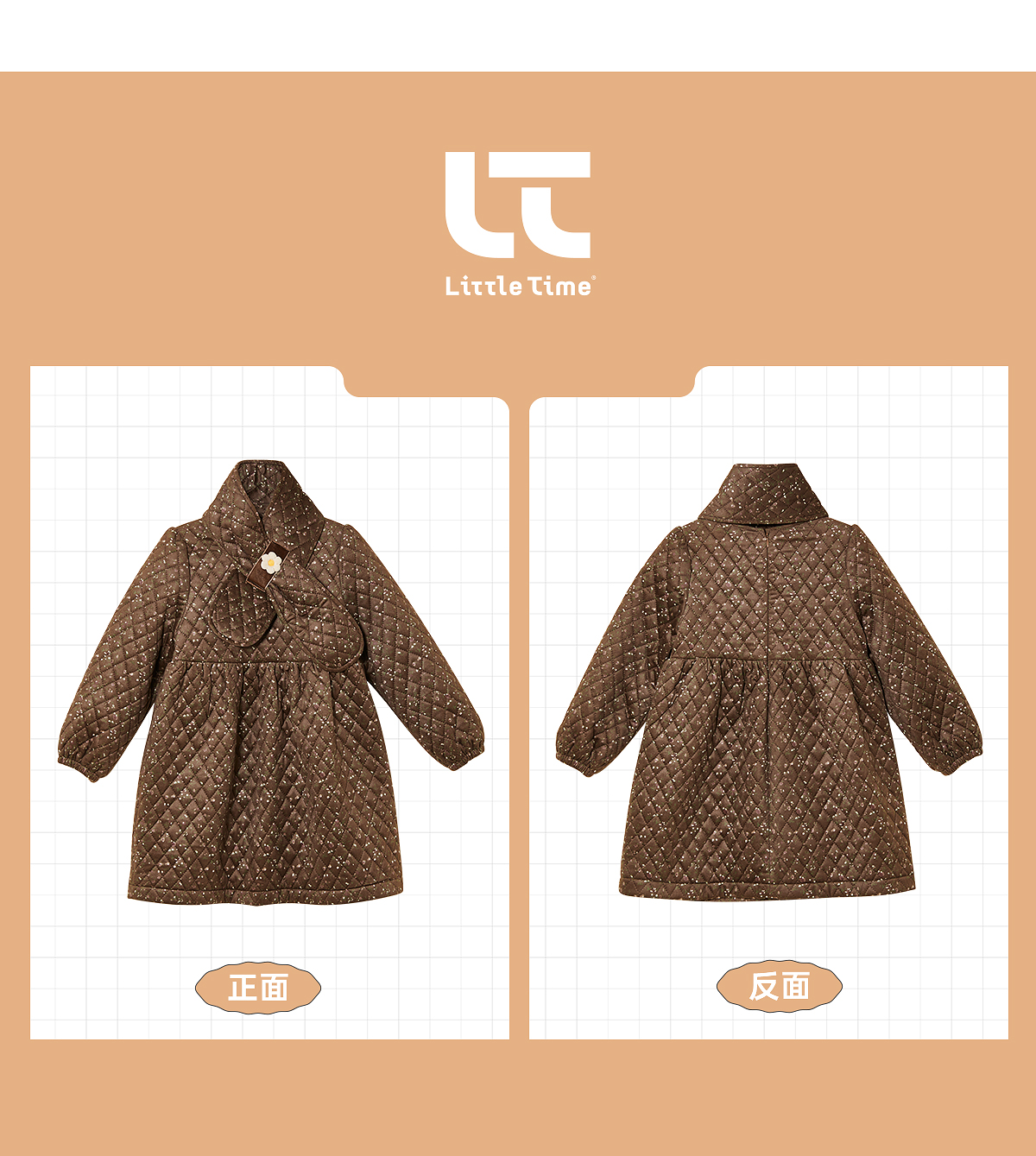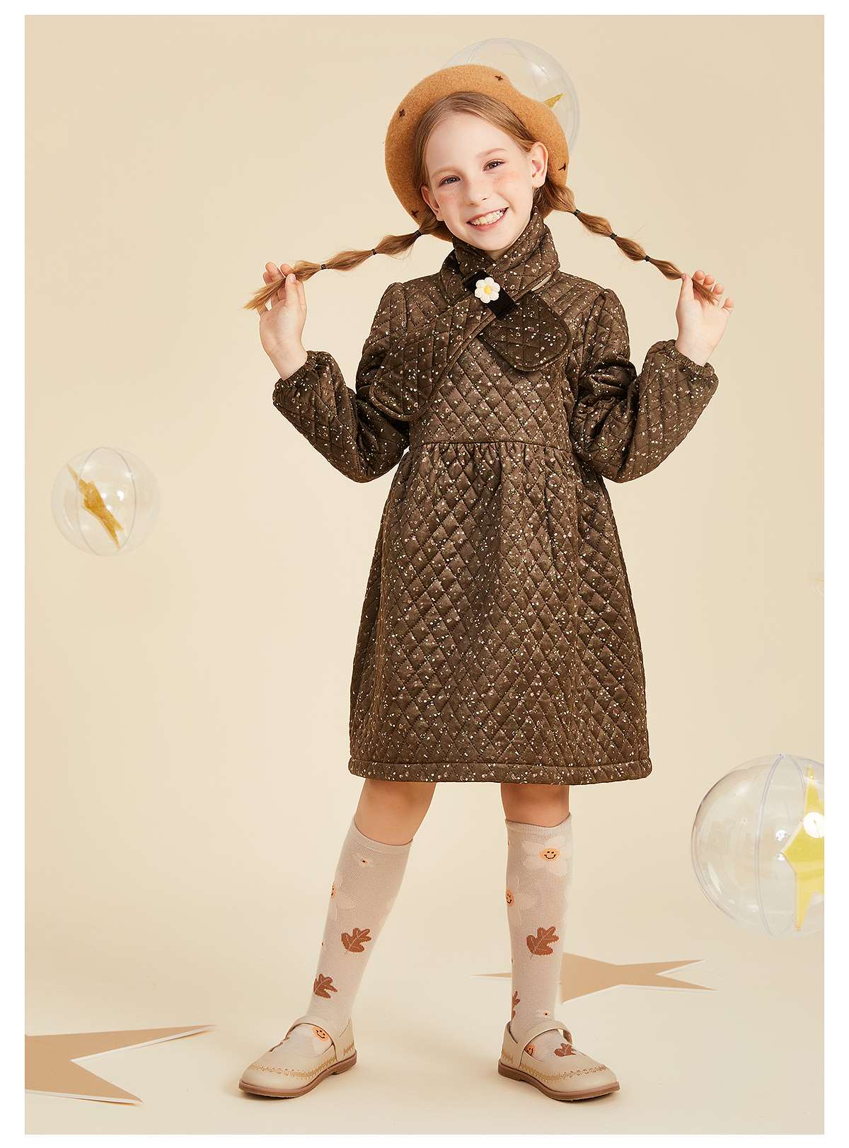 littletime女童丝绒连衣裙秋冬装夹棉加厚2021新款长袖碎花儿童裙
