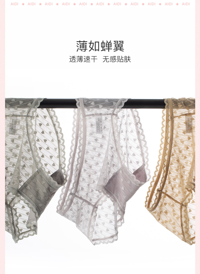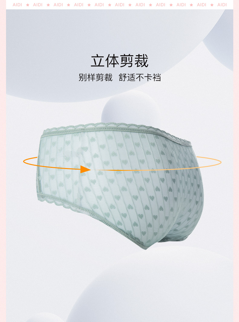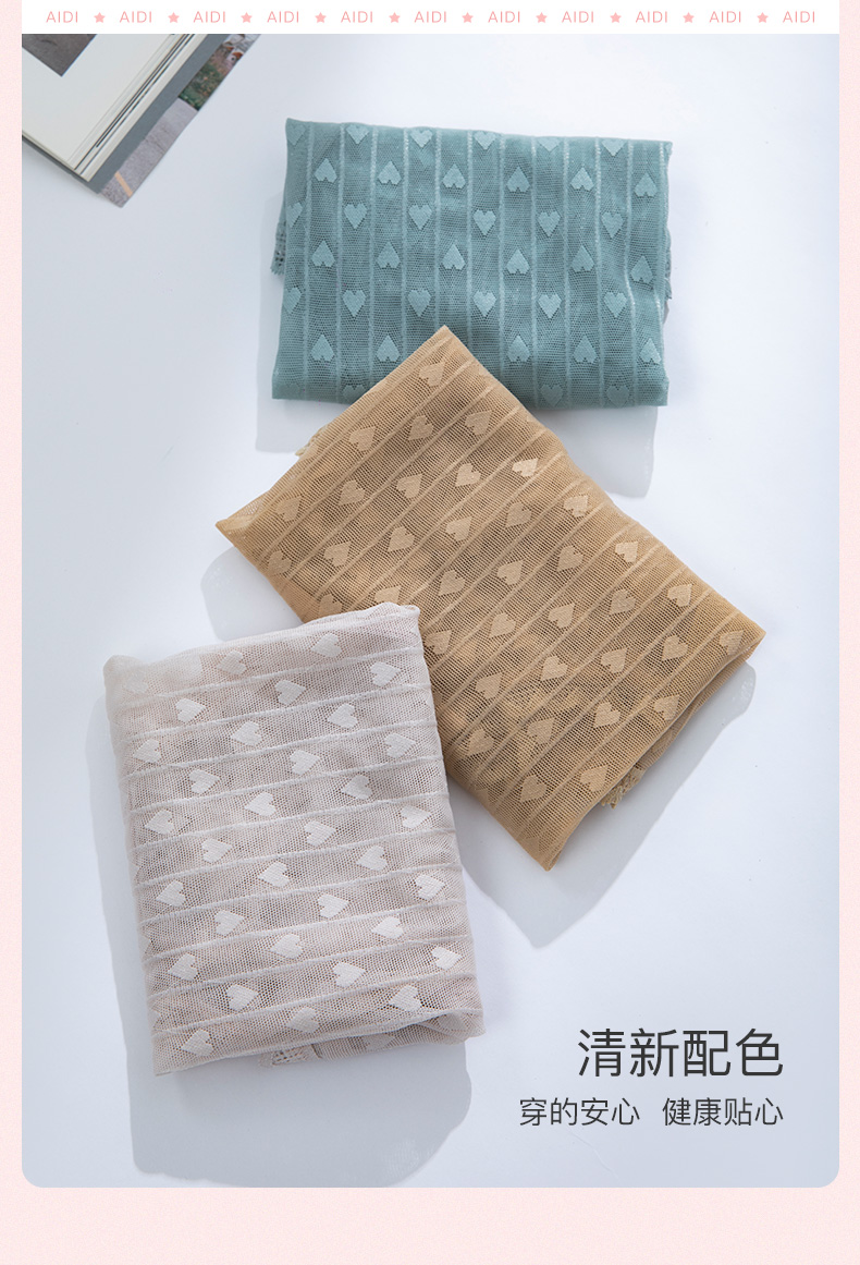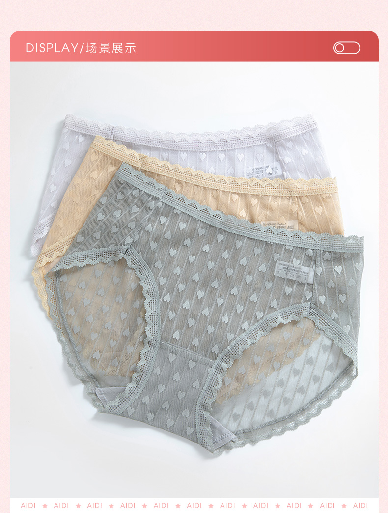爱帝女士高腰心形提花内裤3条装