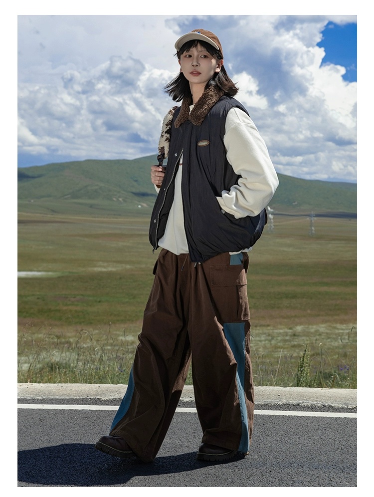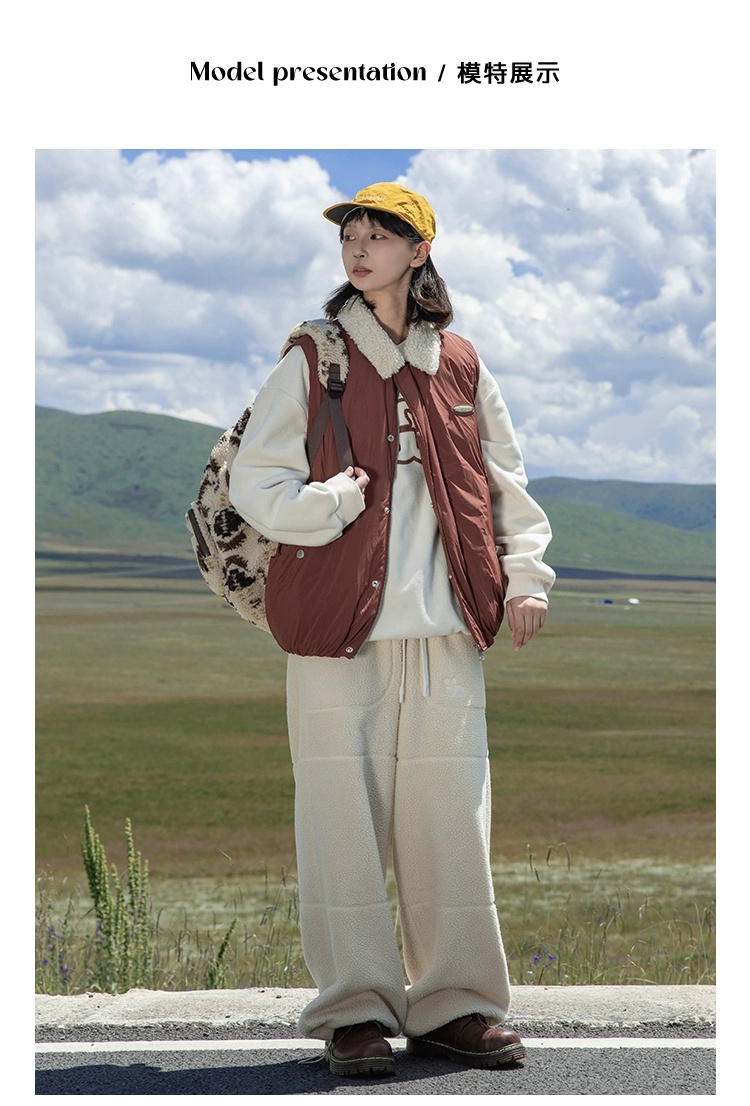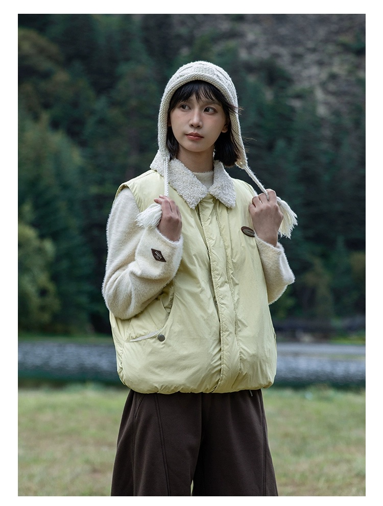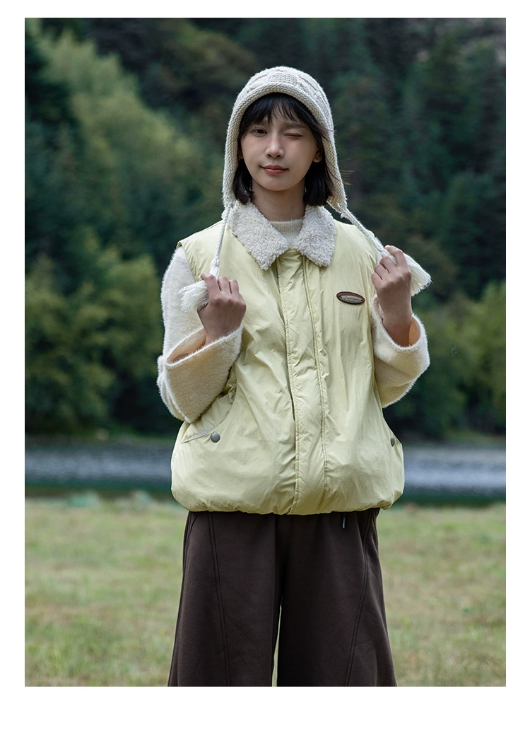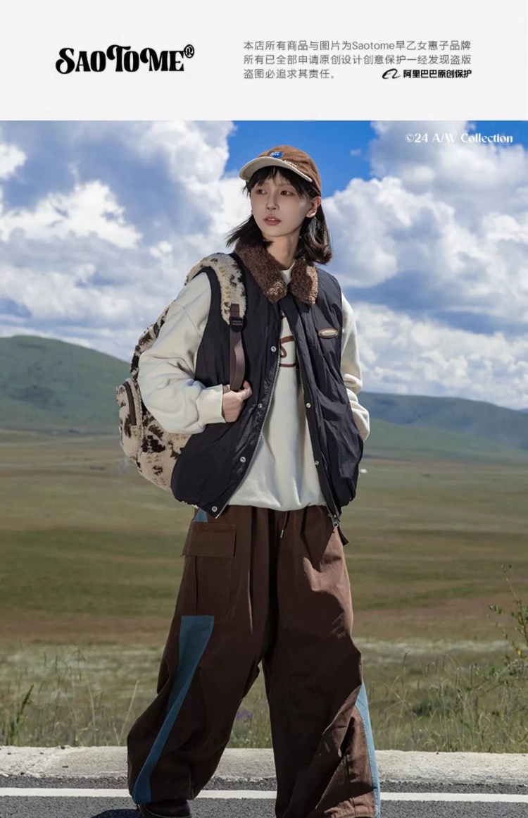 早乙女惠子saotome/STMMF244346/拼色羊羔毛翻领棉马甲