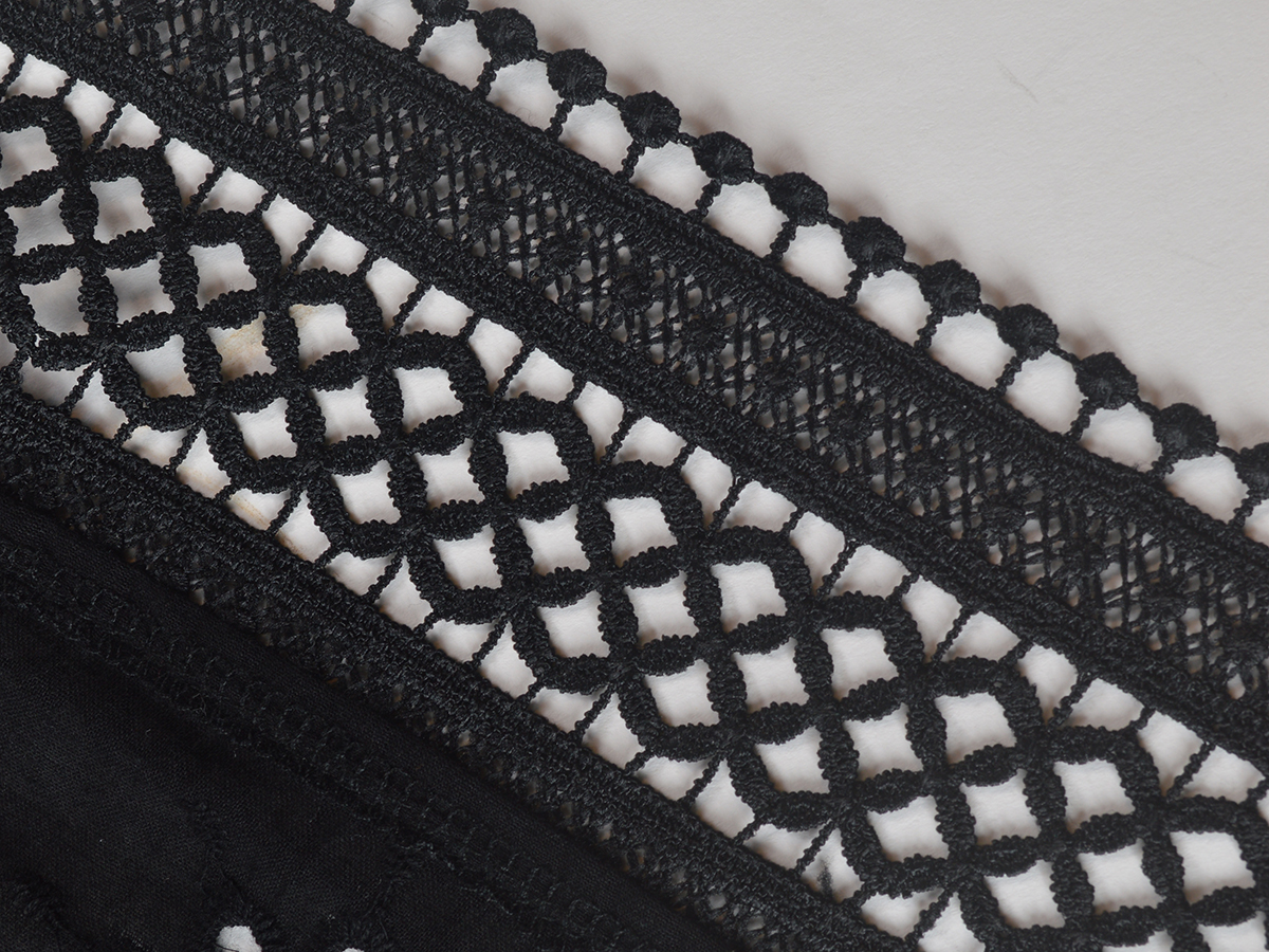 基底采用法国网眼底布(0.3mm孔径确保透气),德国Amann绣线(色牢度4.5级以上);