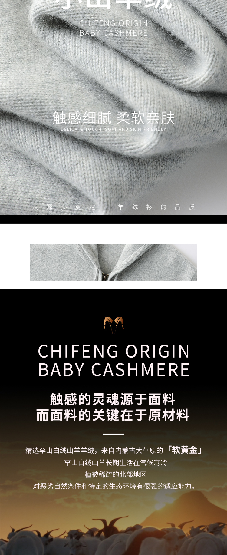 东黎羊绒是赤峰东荣集团自主品牌,自有牧场/羊绒制品全产业链优势,实现了羊绒从“牧场”到“商场”的华丽转变。