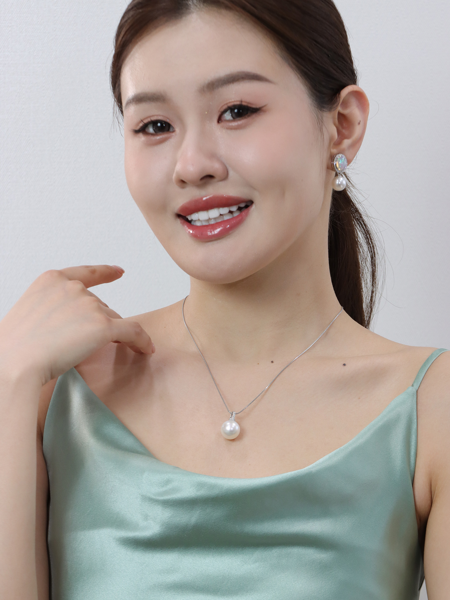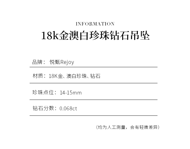 【日本溯源之旅】18k金澳白珍珠钻石吊坠14-15mm 钻石分数:0.07ct(展会产品拍下后不支持7天无理由退换货)