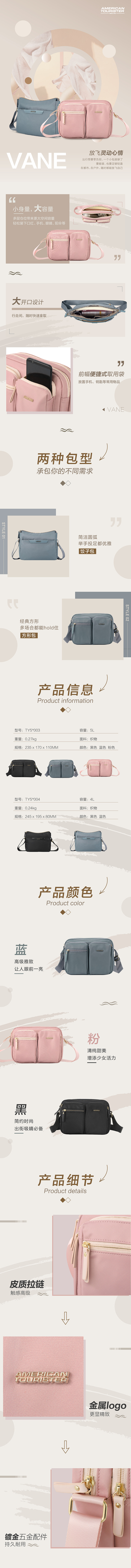 【美旅】便携 轻便 时尚设计 多口袋 易收纳 斜挎包 单肩包 雾霾灰 粉 黑 通勤 TY5