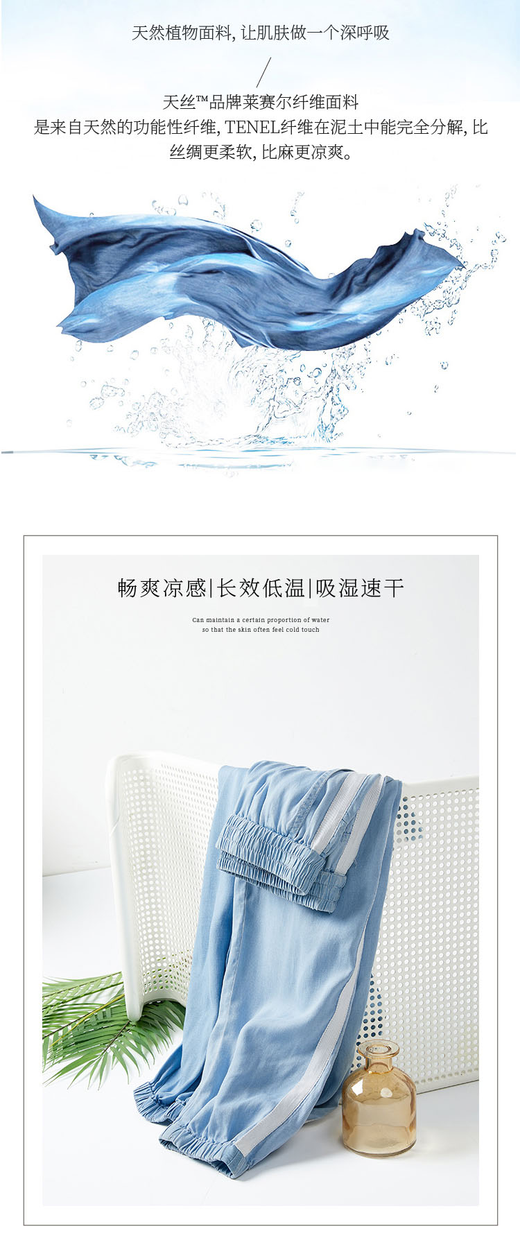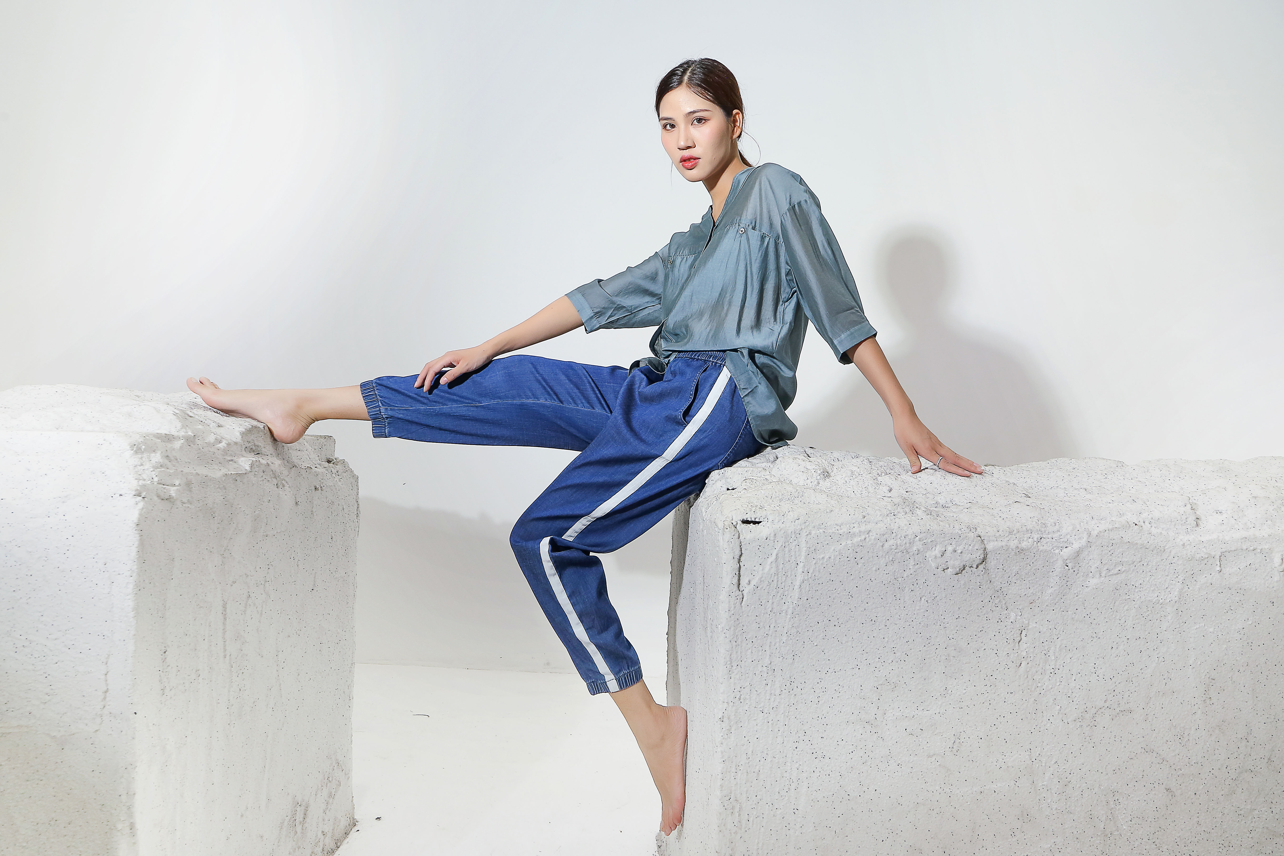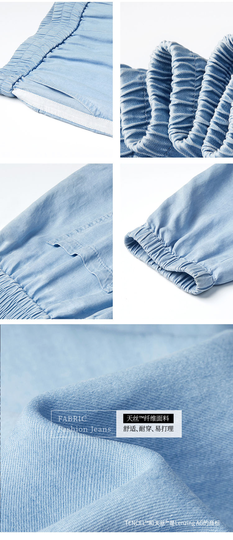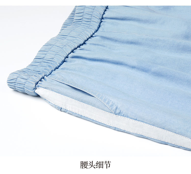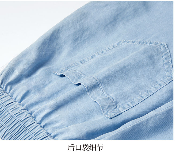 天丝牛仔拼接宽松显瘦九分扎脚裤27032