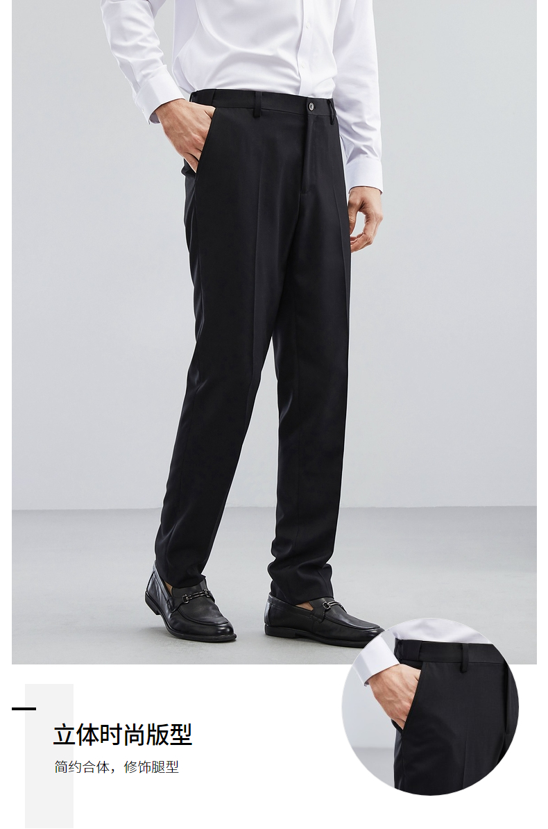 柒牌男士西裤春夏新款商务休闲职业正装松紧腰男装直筒长裤子 124H71650