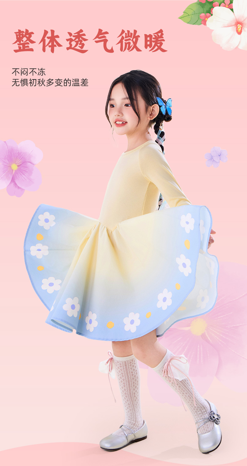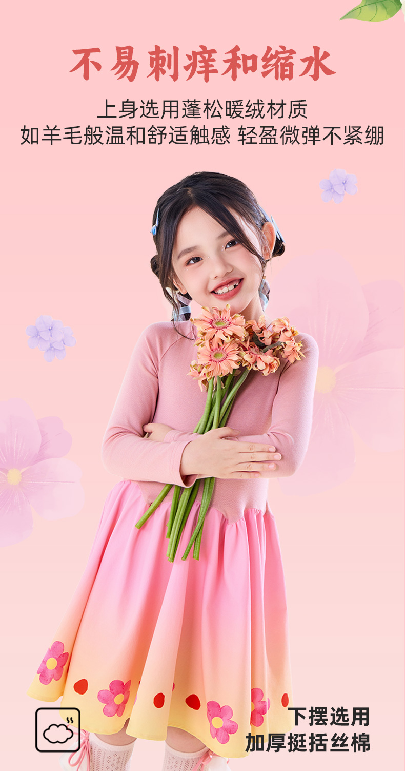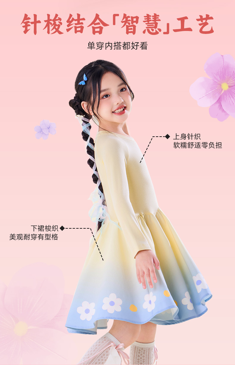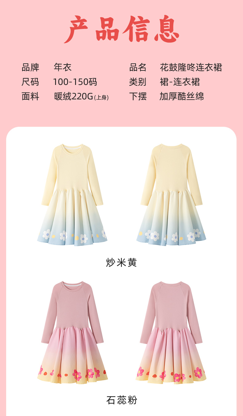 年衣童装女童针织连衣裙2025年秋季新款儿童裙子儿童大裙摆表演服花鼓隆咚连衣裙