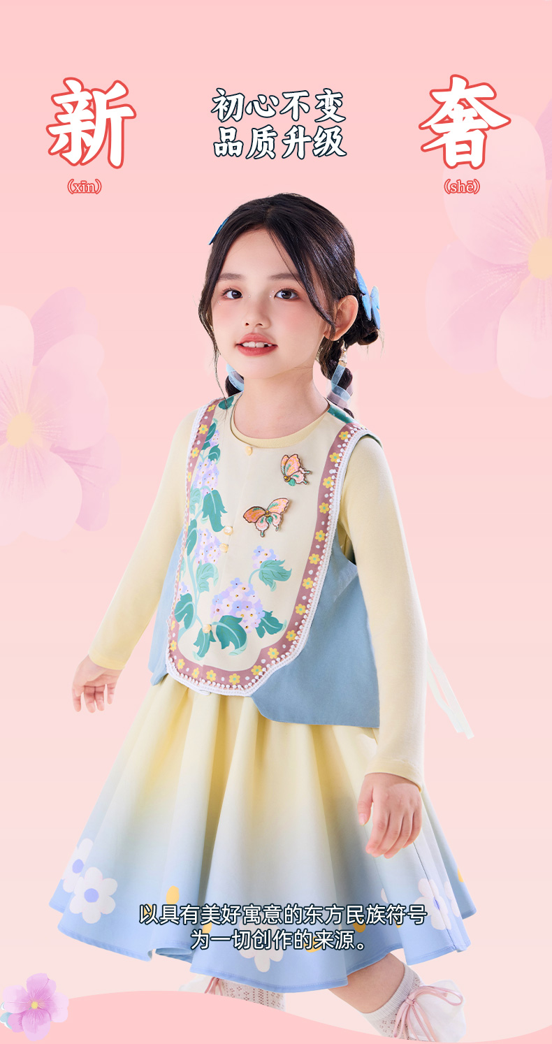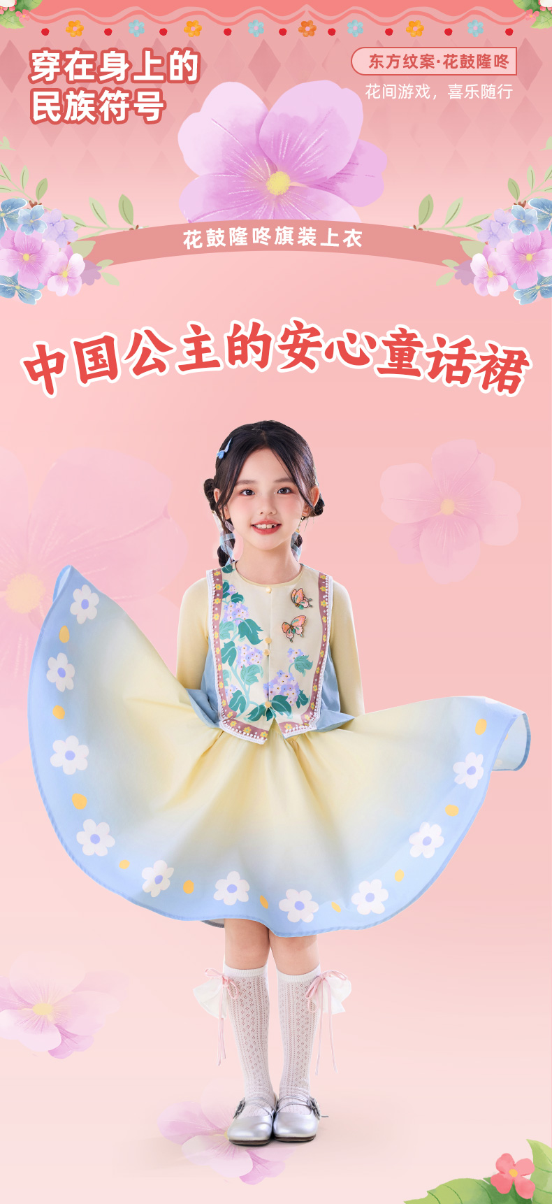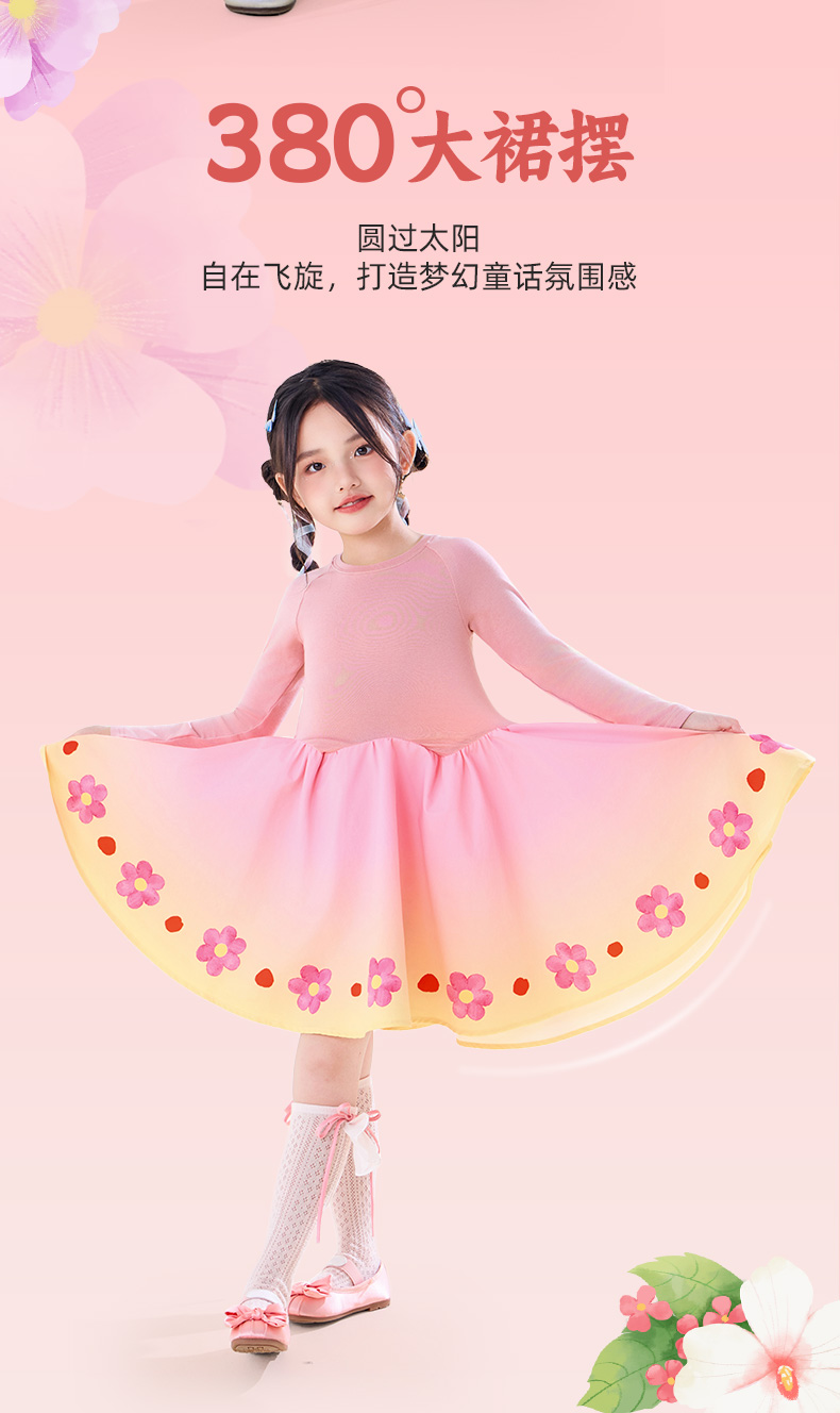 年衣童装女童针织连衣裙2025年秋季新款儿童裙子儿童大裙摆表演服花鼓隆咚连衣裙