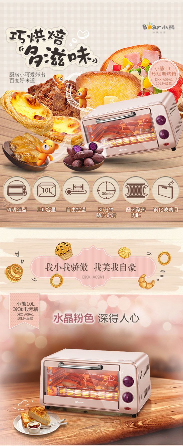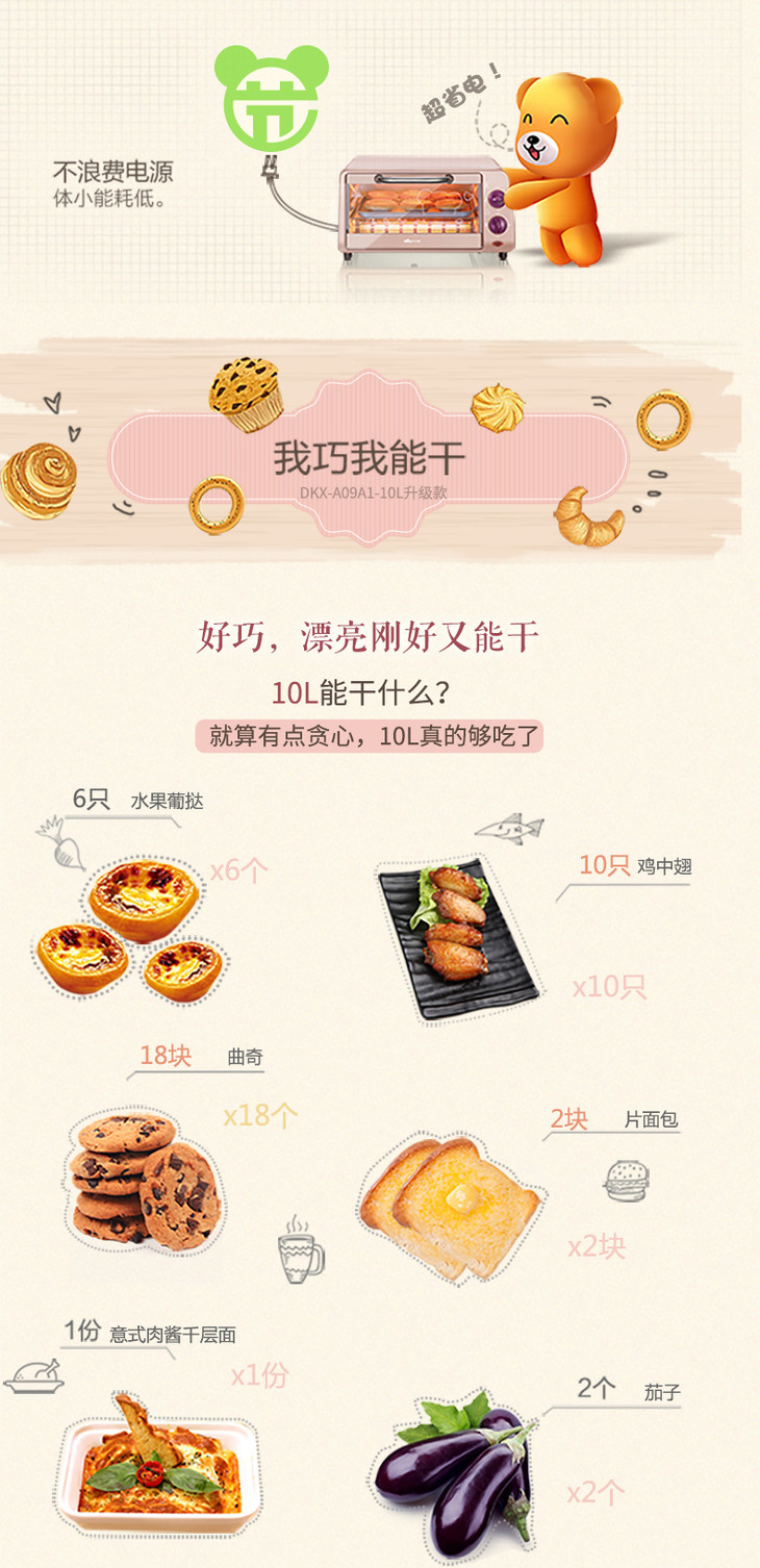 小熊(Bear) 电烤箱 多功能家用迷你小型入门级烘焙烤箱10升做蛋糕机器 DKX-A09A1