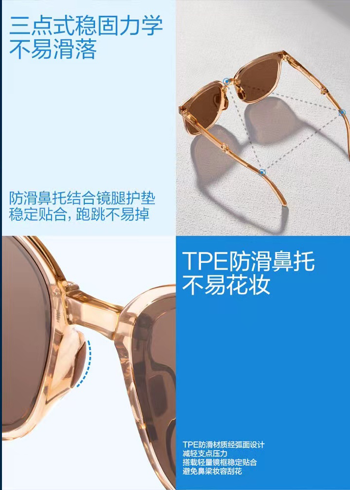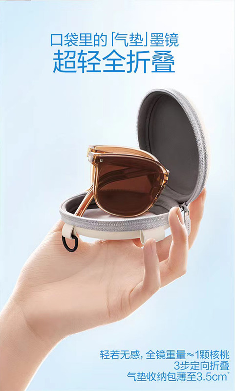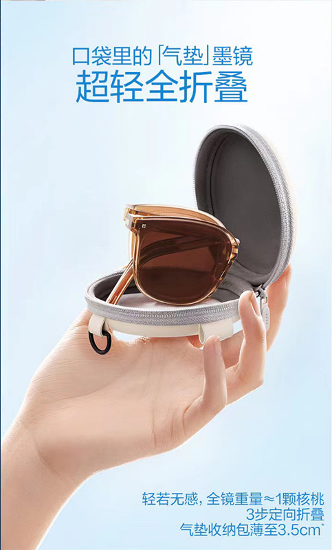 3:可折叠的镜框和镜腿,三秒钟收纳,小巧不占地儿,只有气垫大小,超轻的镜架+防滑鼻托+镜腿护垫稳定贴合