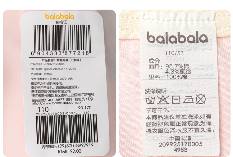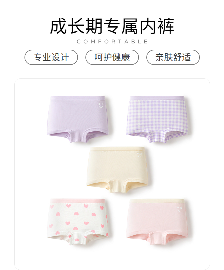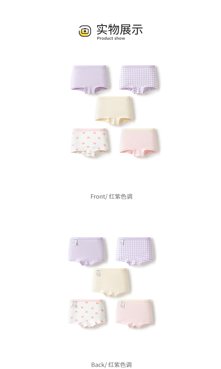 巴拉巴拉儿童内裤棉a类女童平角短裤小童中大童宝宝四角裤五条装