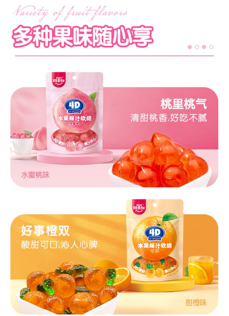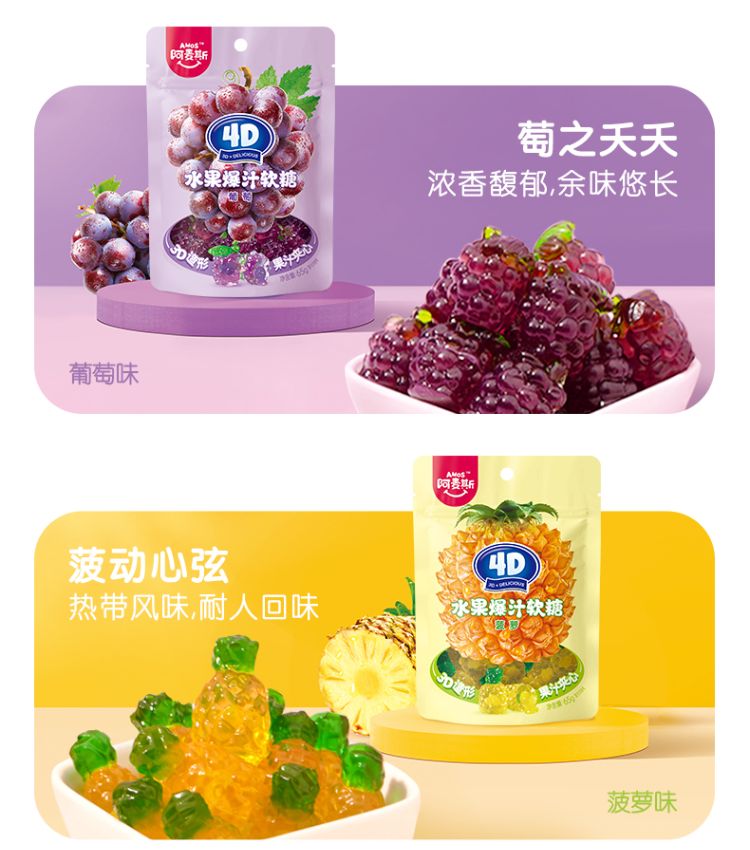 阿麦斯4D菠萝爆汁软糖65g/袋